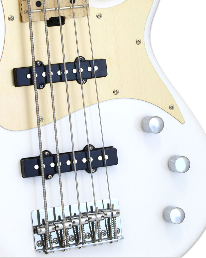 ARIA RSB-618/5 предлагает два оригинальных звукоснимателя, формирующих широкий диапазон для тонального контроля: в позициях грифа и бриджа. Темброблок представлен ручками Volume, Balancer и Tone. Фурнитура гитары - хромированная.