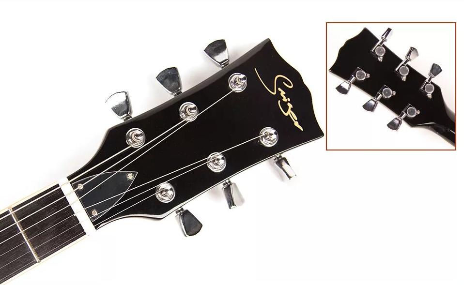 В регуляторах гитары предусмотрены 2V/2Т и 3-позиционный переключатель, а фурнитура выполнена в стильном хроме. Красивый черный цвет гитары придает ей элегантность и индивидуальность.