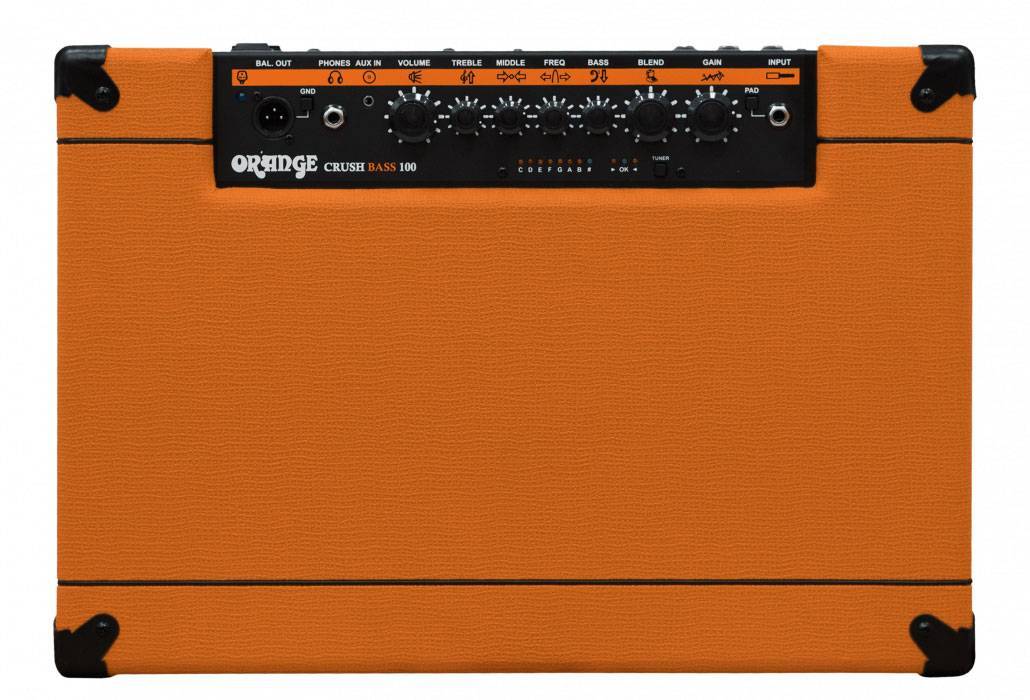 Обновленный ORANGE CRUSH BASS 100 так же основан на разработках флагманских серий OB1 и 4 STROKE и обладает мощью, достаточной для небольших концертных площадок - это серьезный комбо-усилитель, обладающий универсальностью как в звуке, так и в функционале. В нем применены инженерные решения, обычно не встречающиеся в усилителях такого типа. Ключом к чрезвычайно плотному, с превосходной детализацией, звуку стала 100-ваттная выходная секция. Все дело в том, что она построена на дискретных, раздельных компонентах, в отличие от повсеместно использующихся интегральных микросхем, и этот выбор схемотехники дает усилителю сенсационный уровень чистоты звука на всем спектре, а 15-дюймовый динамик позволяет выдавать самые низкие частоты громко и с хорошей артикуляцией.За формирование тембра в CRUSH BASS 100 отвечает мощный преамп под стать оконечнику. С одной стороны, темброблок стал проще, чем в предыдущей версии, многочисленные регуляторы Contour, Presence, Treble, Hi mid, Lo mid, Bass заменили те же самые регуляторы низких и высоких частот с параметрическим регулятором середины, как и в менее мощных моделях, однако удобство управления тембром от этого никак не пострадало. Здесь мы так же имеем регулятор перегруза с возможностью смешения с чистым сигналом, которым можно управлять с помощью футсвитча, комбинированный выход на наушники/линейный выход со спикосимом, хроматический тюнер и петлю эффектов, инструментальный вход с переключателем чувствительности, а так же вход для внешнего источника сигнала для игры под минус.