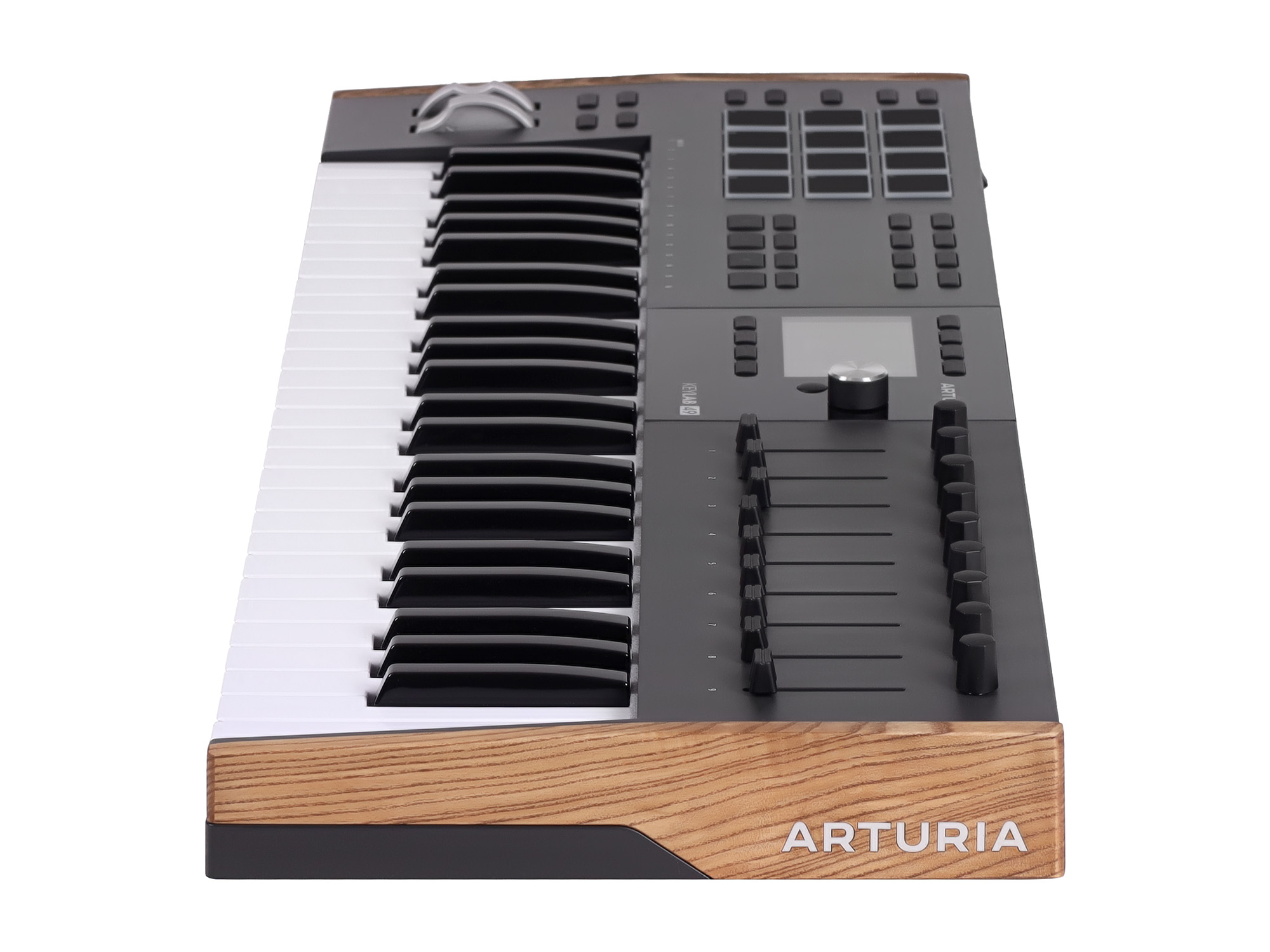 KeyLab MK3 впечатляет эргономичным дизайном и глубокими возможностями управления. Она обеспечивает полное взаимодействие с основными DAW, поддерживает управление плагинами и предлагает мгновенный доступ к основным функциям, включая пэды, фейдеры и энкодеры, чувствительные к прикосновению. 3,5-дюймовый цветной дисплей обеспечивает наглядную навигацию, а поддержка послекасания даёт расширенный контроль над динамикой и артикуляцией звука. Благодаря включённым программам — таким как Analog Lab Pro и Ableton Live Lite — вы можете начать творить сразу после подключения.