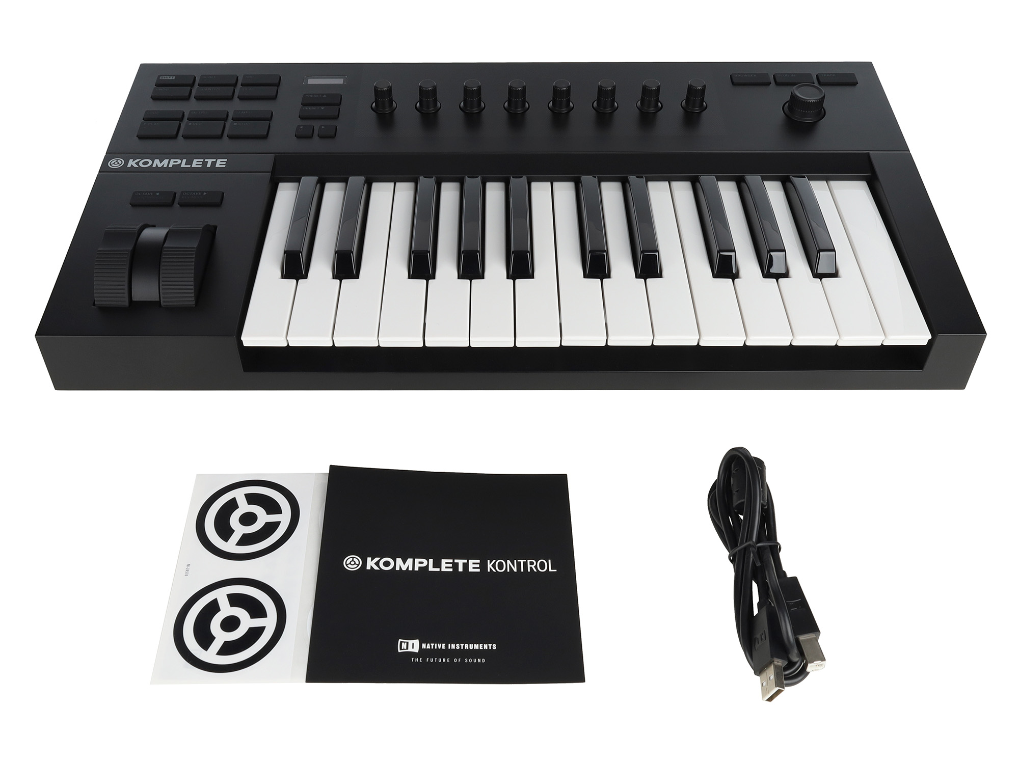 В комплекте: USB кабель, ПО KOMPLETE KONTROL, MASCHINE ESSENTIALS, MONARK, THE GENTLEMAN, REAKTOR PRISM, SCARBEE MARK I и т.д.
