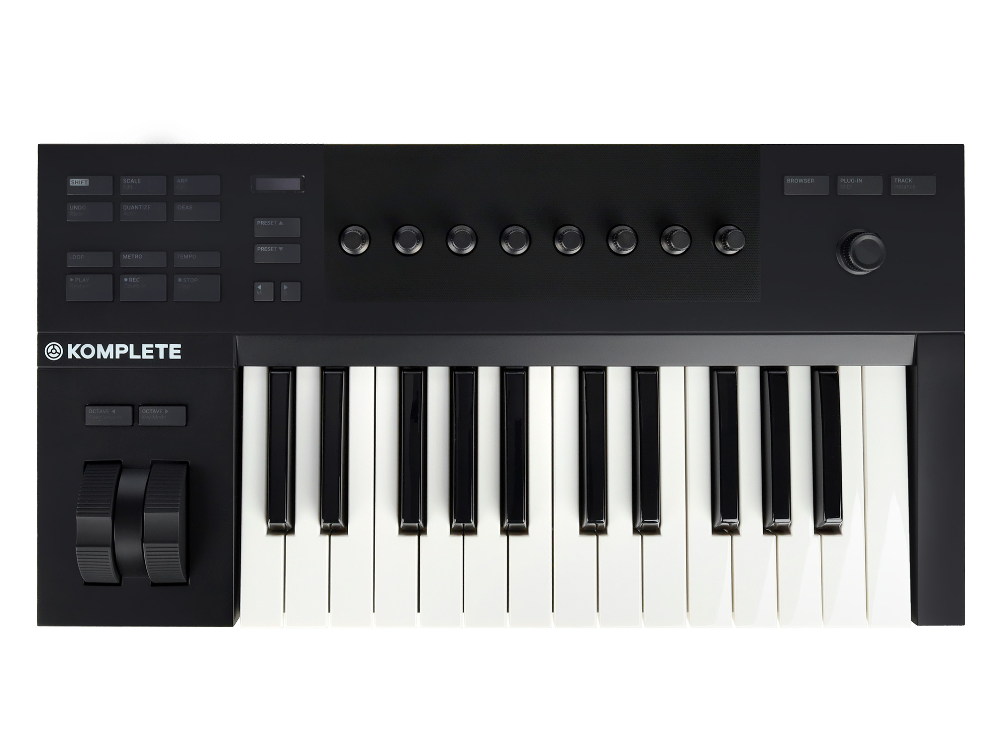 Модель является младшей в линейке и имеет полувзвешенную клавиатуру с 25 клавишами с чувствительностью к силе нажатия. На лицевой панели также располагаются 19 кнопок для управления такими функциями, как квантизация, апреджиатор, включение/выключение записи и многими другими. С помощью этих клавиш также можно оперативно перемещаться по интерфейсу DAW, выбирать интересующие тембры и изменять их звучание. Клавиатура может работать в режиме Smart Strip, который позволяет исполнять ноты строго в рамках заданной тональности. Есть 8 назначаемых регуляторов, которые могут отвечать за различные параметры, например, фильтры, посылы на эффекты, громкость, баланс и другое. В наличии также есть энкодер, служащий для навигации по DAW. Присутствует вход для педали сустейна, представленный разъемом 1/4'' Jack TRS. Сама педаль в комплект не входит и приобретается отдельно. Также в наличии есть 2 колеса, отвечающие за высоту тона и глубину модуляции. Подключение к компьютеру осуществляется посредством порта USB-B. Питание также осуществляется по USB.