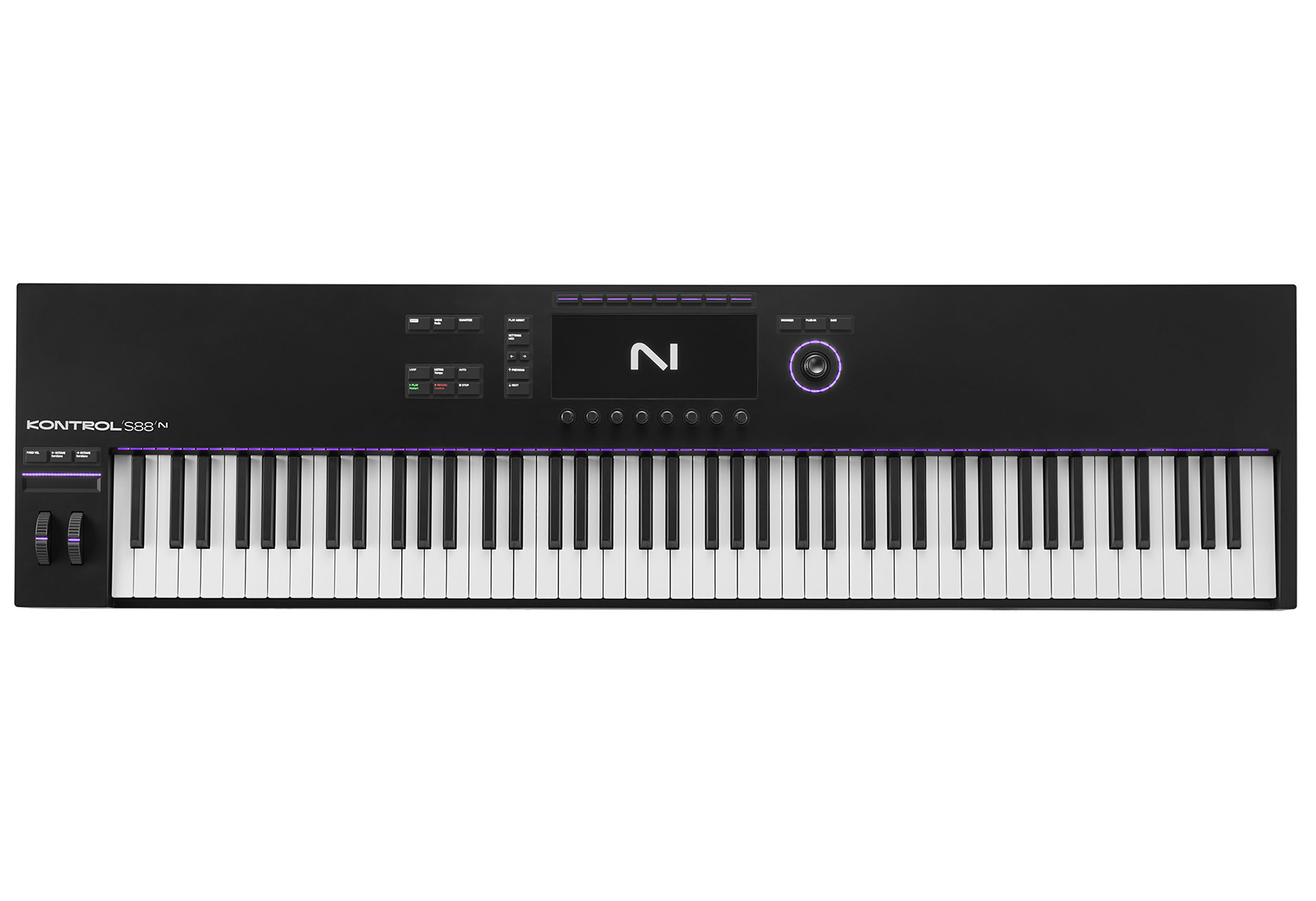 Клавиатура оснащена полноразмерными 88 клавишами с взвешенной механикой и поддержкой Aftertouch, обеспечивая естественное фортепианное ощущение игры. Над клавишами встроена система RGB-подсветки Light Guide, отображающая активные зоны, сэмплы, ноты, аккорды и прочие функции. 4-дюймовый цветной дисплей позволяет легко управлять плагинами, изменять параметры и переключать пресеты прямо с устройства без необходимости смотреть в монитор.