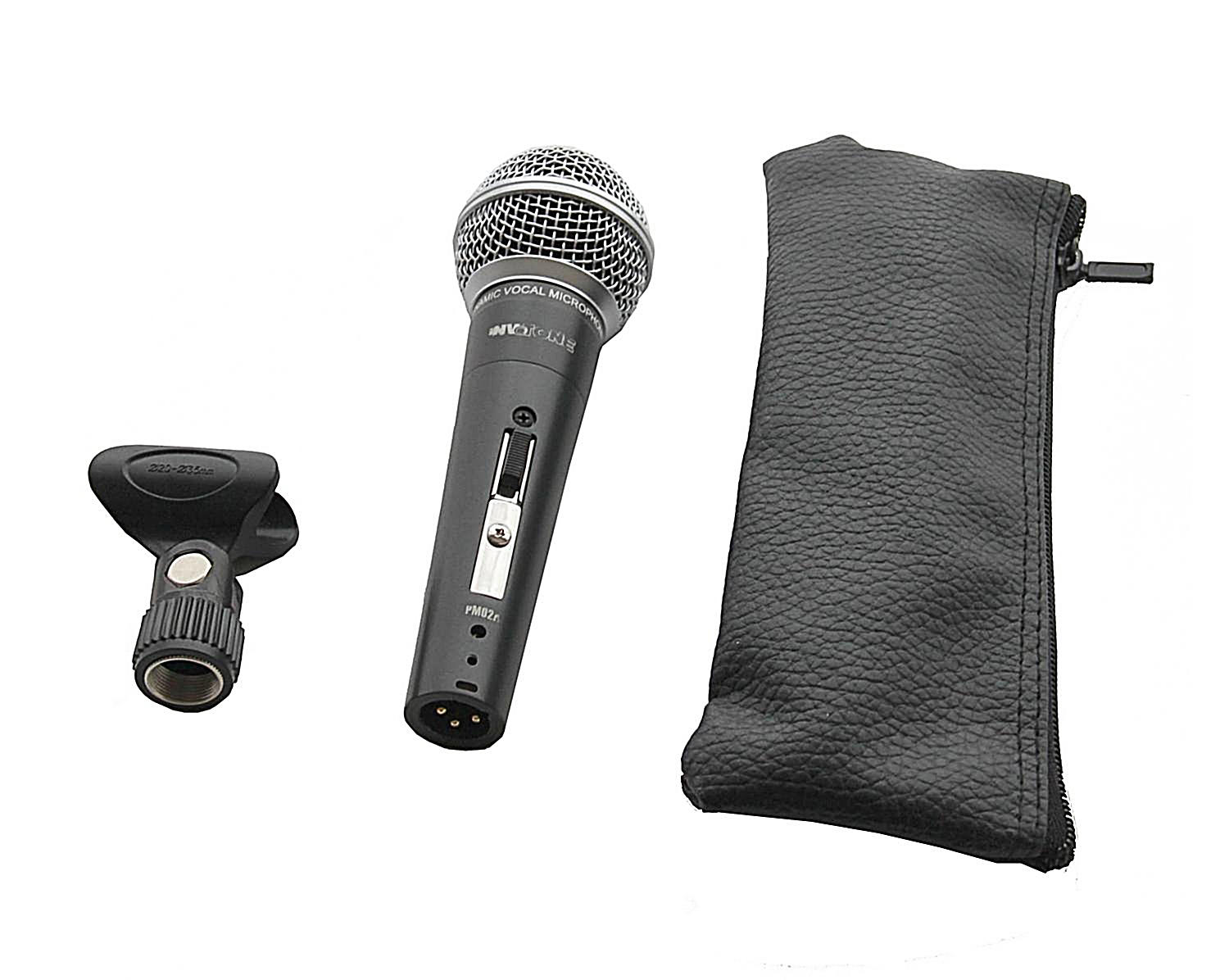 INVOTONE PM02A – вокальный динамический микрофон с гиперкардиоидной направленностью, который также подойдет для озвучивания акустических инструментов. Это отличное решение для использования в театре и караоке. Микрофон отличается с высокой чувствительностью -53 дБ и широким диапазоном частот от 50 до 15 000 Гц. Выходное сопротивление PM02A составляет 600 Ом при 1 кГц.Микрофон способен выдерживать максимум 144 дБ звукового давления. Корпус выполнен из цинкового сплава, а капсюль защищен стальной сеткой. Имеется кнопка включения. В комплект входит держатель и чехол на молнии.