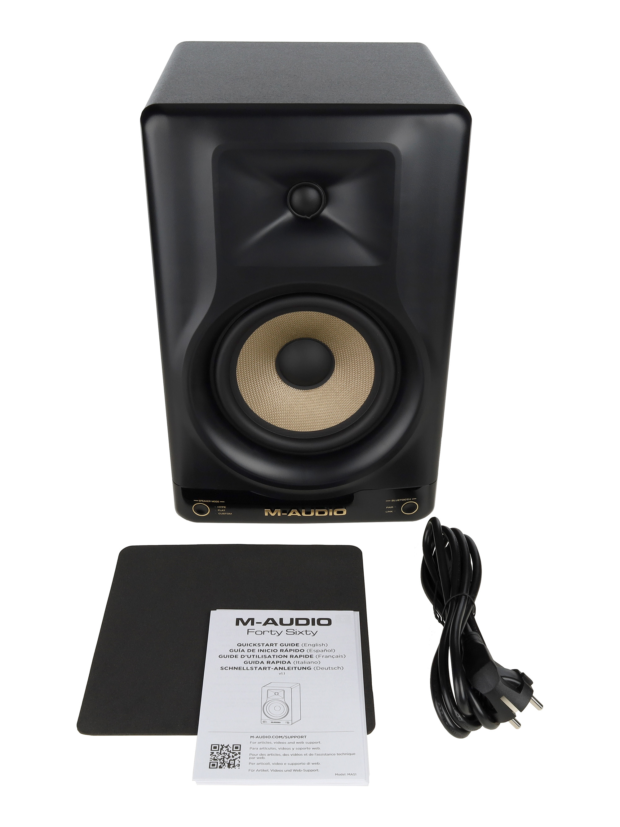 M-Audio Forty Sixty разработаны для воспроизведения студийного звука с нейтральной частотной характеристикой и мощностью 120 Вт. Они оснащены двухполосной системой с акустически инертным корпусом из МДФ с фазоинвертором, обеспечивающим глубокие и четкие басы благодаря низкочастотным динамикам из кевлара. Высокочастотные твитеры с шелковым куполом и оптимизированный волновод способствуют точной передаче высоких частот и улучшенной стереопанораме.