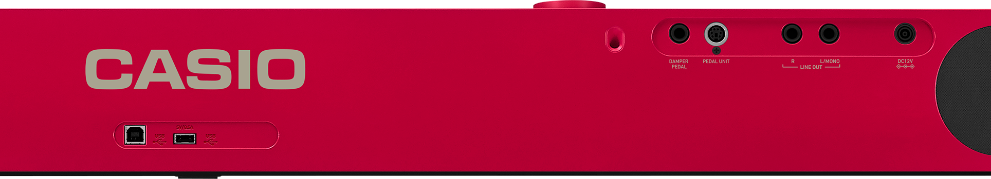Разъёмы: PHONES / OUTPUT: PHONES: 2 (стерео мини джек), разъем для педали, разъем для 3-педального блока, LINE OUT: 2 L / MONO, R (стандартный разъем), USB типа A (беспроводной MIDI и аудио адаптер), USB типа B