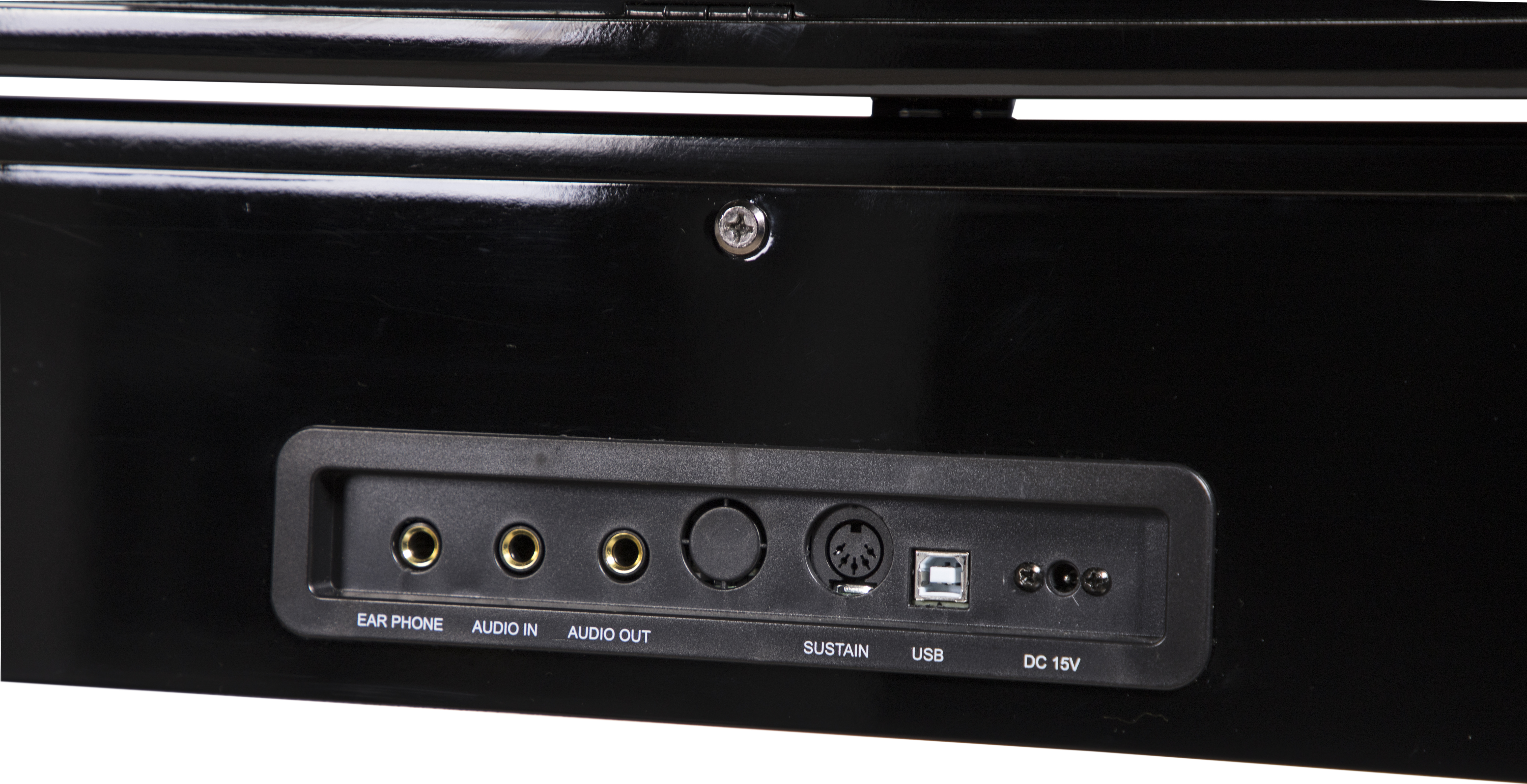 Разъёмы: USB Type A, USB Type B, разъем для педалей, наушники x1, AUDIO IN/OUT, DC 15V