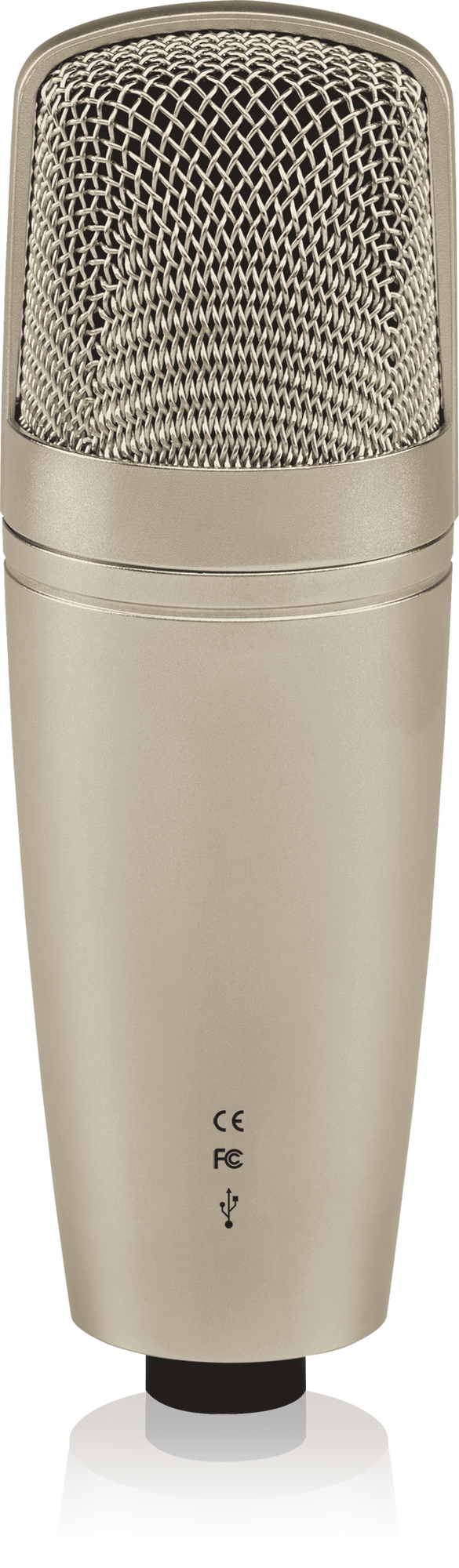В отличие от динамического микрофона, конденсаторный микрофон берет звук со всей окружающей среды (например, со всей комнаты): он является кардиоидным, и это позволяет захватывать намного больше деталей в высоком качестве. Но поскольку обычные конденсаторные микрофоны не предназначены для прямого подключения к компьютеру, то вам нужно дополнительно подключать микрофонный предусилитель и аудиоинтерфейс для того, чтобы звук попал в компьютер. Behringer C-1U не нужен предусилитель или связующий интерфейс: микрофон подключается напрямую к компьютеру и получает всё необходимое питание от порта USB.