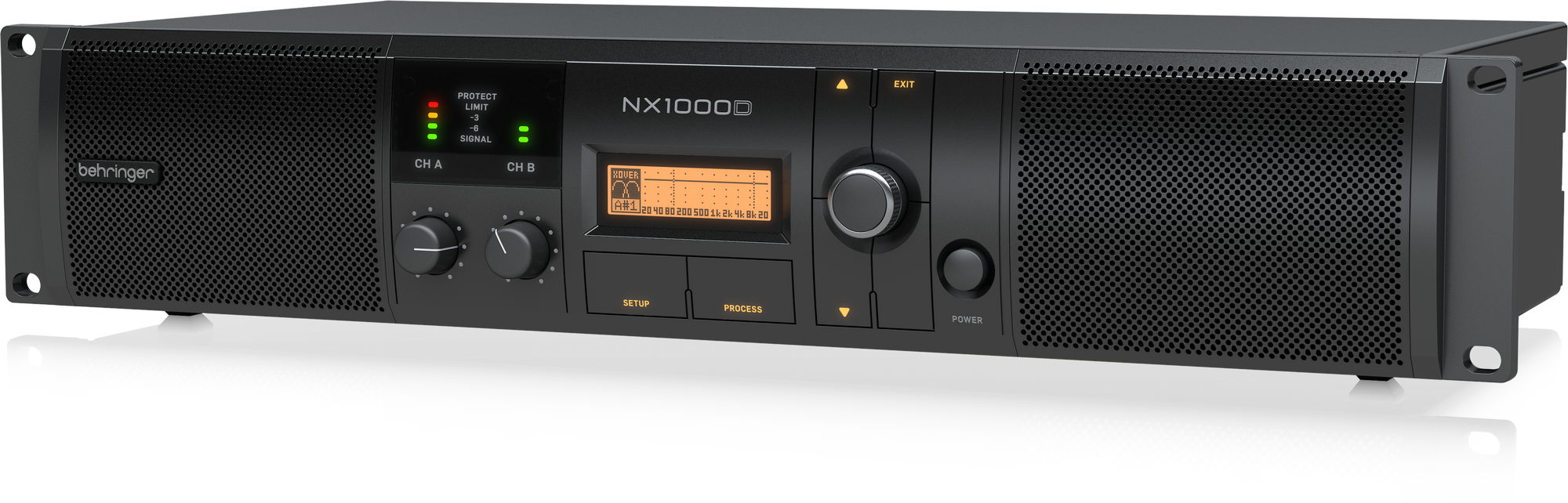 Behringer NX1000D имеет большую мощность, обширный функционал, обладает легким весом и компактным корпусом, что позволяет рекомендовать устройство для студийных и концертных условий. Усилитель практически не имеет собственного шума, работает с сигналами с разным сопротивлением, имеет защиту от перегрева и перегрузки, а также потребляет малую мощность 150 Вт.