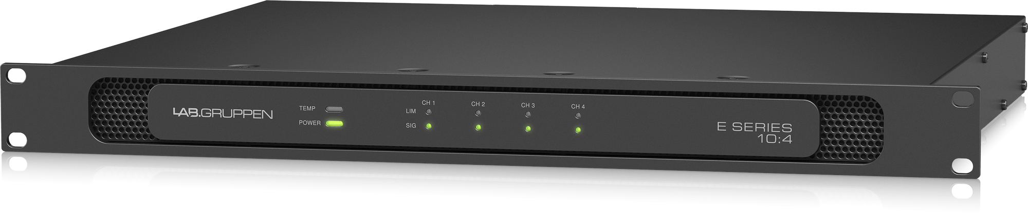 Lab.gruppen E 10:4 представляет собой профессиональный усилитель мощности, эффективно выполняющий свою главную функцию, а также предлагающий обширные возможности для коммутации с различными типами источников звука и достаточно высокую мощность. Корпус модели выполнен в виде прочной алюминиевой конструкции рэкового формата высотой 1U.