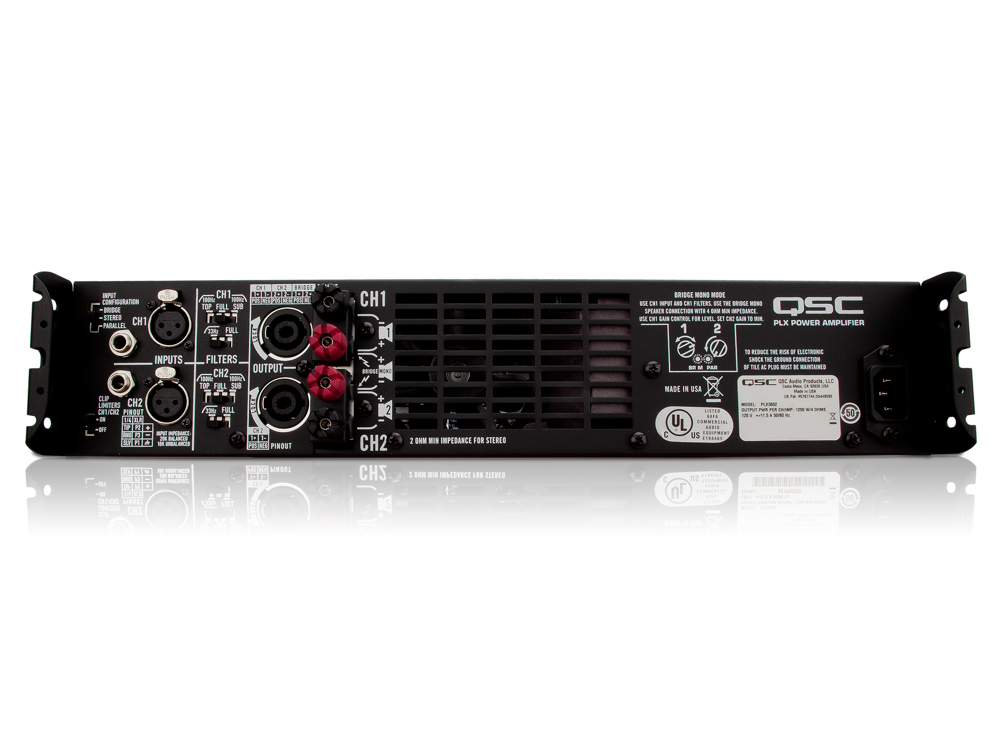 Полная выходная мощность у QSC PLX3602 составляет 775 Вт/канал при подключении нагрузки сопротивлением 8 Ом, 1250 Вт/канал – с четырехомной нагрузкой, 1800 Ватт/канал – с двухомной нагрузкой, также есть возможность работы в мостовом режиме.