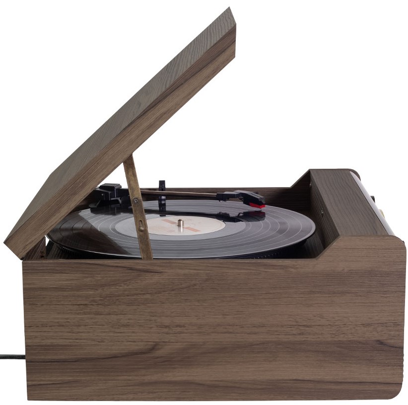 Проигрыватель оснащен встроенным Bluetooth версии 5.0, позволяющий воспроизводить любимую музыку прямо с вашего смартфона на виниловом проигрывателе. С помощью выхода-RCA, можно подключить активные внешние стереодинамики для большей мощности и полного погружения в аналоговое звучание. Вы можете прослушивать музыку со своего аудио источника (МР3 плеера, смартфона, CD плеера и т.д.) подключив их через линейный вход AUX (Line-in) и воспроизводить музыку через встроенные динамики проигрывателя.