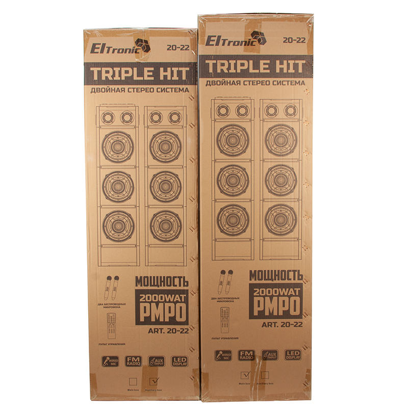 Комплект: Акустическаясистема (2шт), Микрофон безпроводной 2 ш, Пульт Д/У, Кабель питания, Кабель синхронизации подсветки, Кабель акустический, Кабель 3.5 мм на тюльпан, Инструкция
