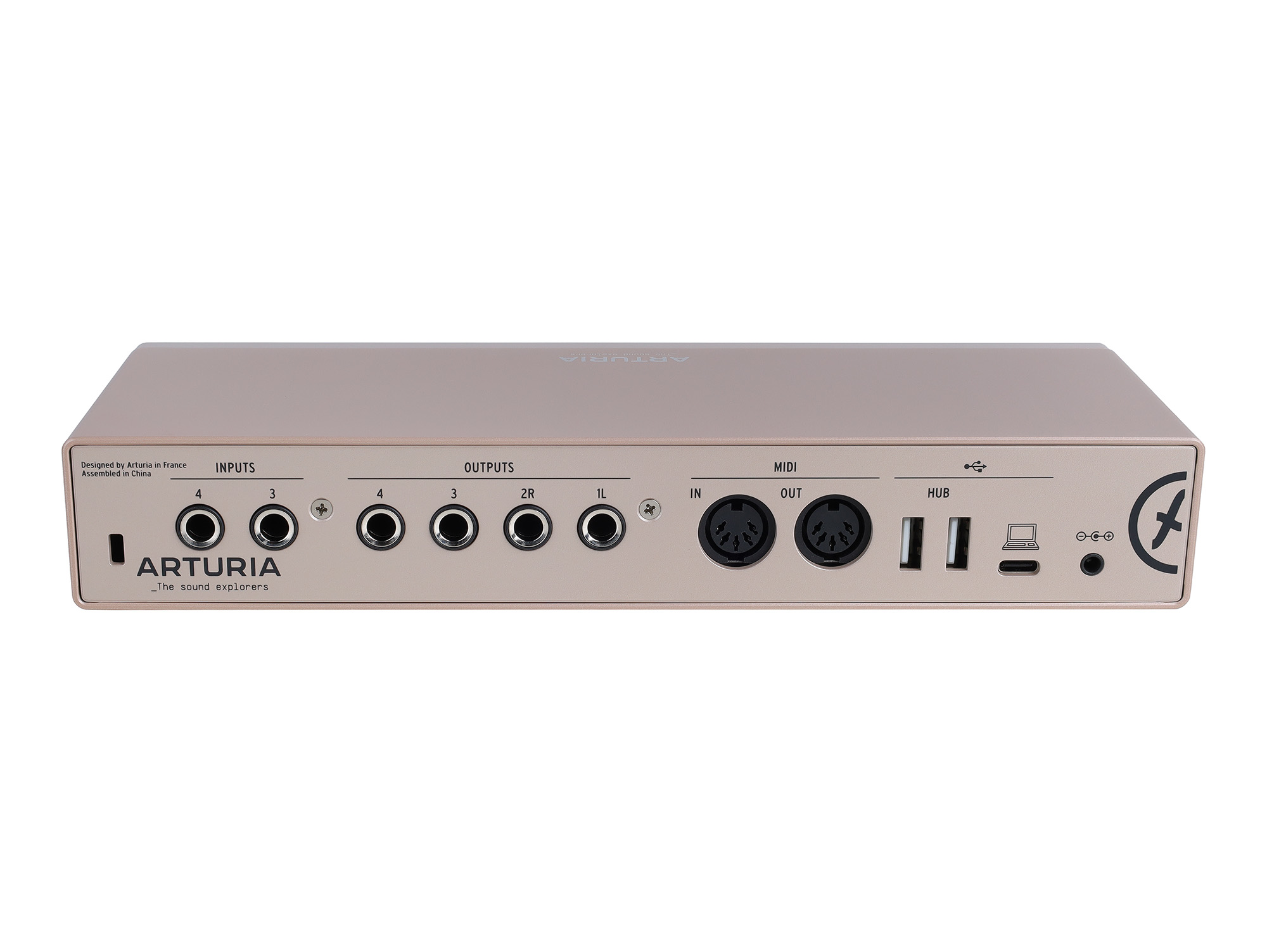 Входы/выходы: два универсальных XLR/1/4" микрофонных/инструментальных входа, 2 x 1/4 инструментальных входа, четыре балансных TRS выхода на студийные мониторы, 2 x TRS выход на наушники, MIDI in/out