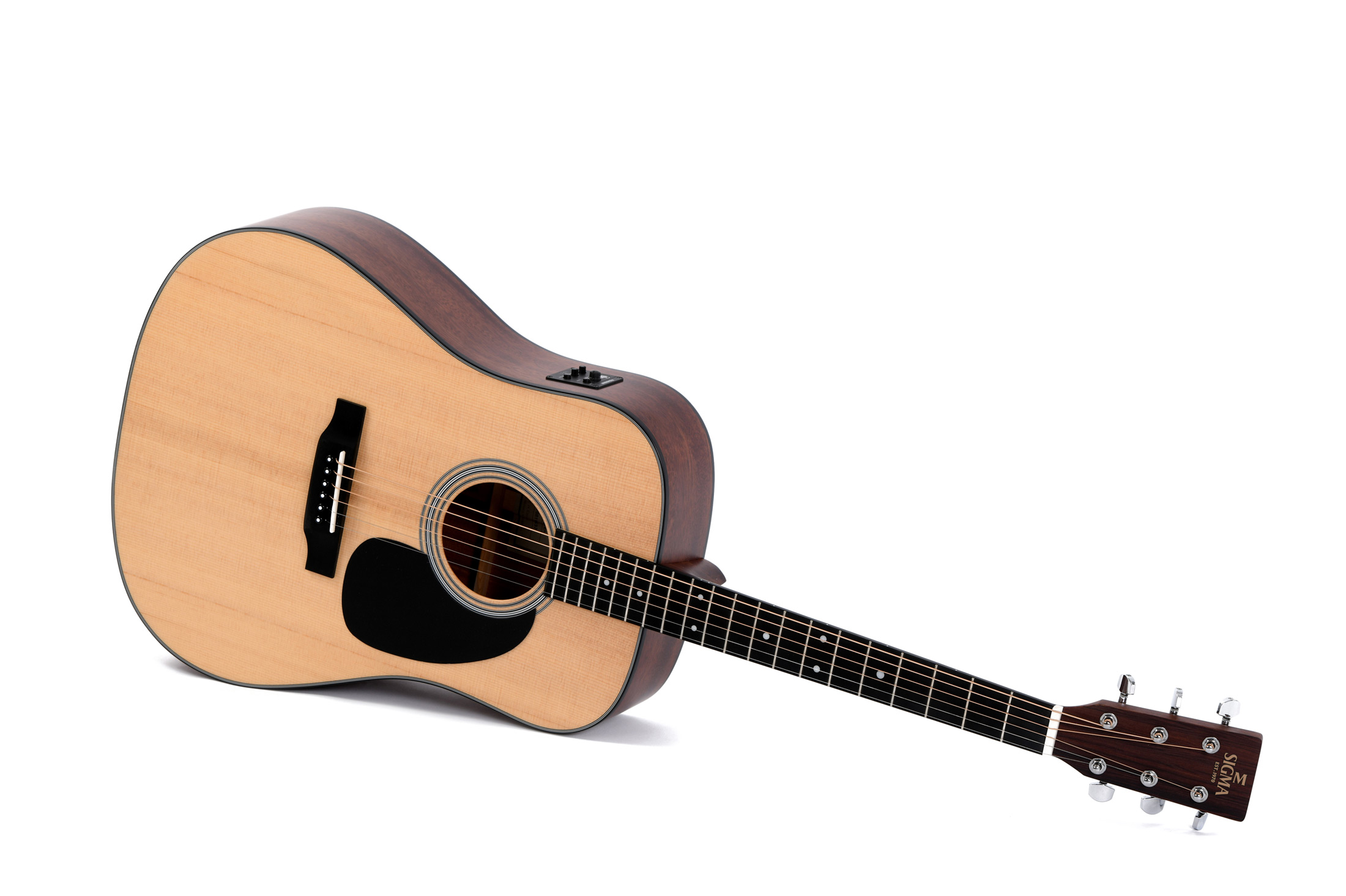 Электроакустическая гитара Sigma SDM-STE - знаменитая гитара, обладающая классическим, но универсальным звучанием в сочетании высококлассных материалов сборки и передового звукоснимателя Fishman Presys II, позволяющим использовать инструмент для выступлений, записи и репетиций. Звук гитары Сигма отличается богатством и насыщенностью благодаря комбинации массива ситхинской ели для верхней деки и массива красного дерева для нижней деки и обечаек. Низкопрофильный удобный гриф с мензурой в 645 мм, костяные порожки и хромированные литые колки - только часть преимуществ гитары SDM-STE. Гитара является полноразмерным инструментом, ориентированным под правую руку. Натуральный цвет с тончайшим покрытием из полиуретанового лака выгодно дополняет безукоризненный дизайн инструмента. Электроакустическая гитара Sigma SDM-STE позволит заниматься творчеством эффективно, стильно и комфортно!