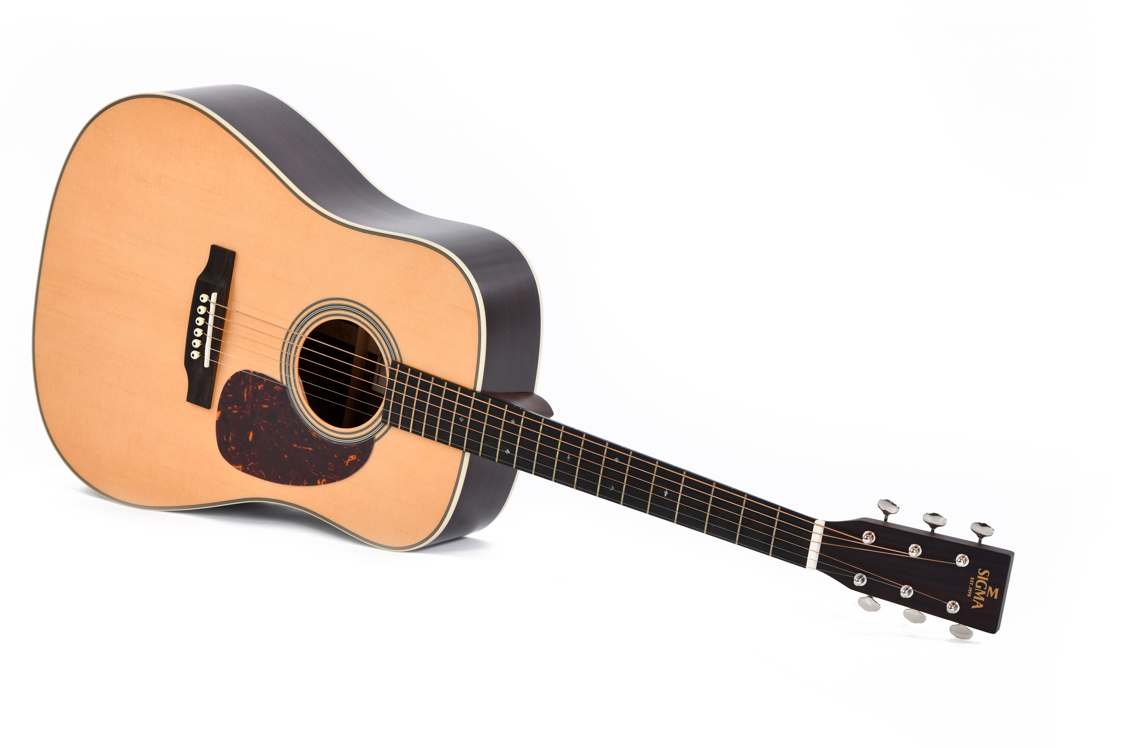 Акустическая гитара Sigma SDR-28 - элегантный инструмент, отличающийся чистым звучанием и отличным качеством сборки. Несколько сортов дерева было использовано для производства гитары SDR-28 - верхняя дека из массива ели, обечайки и нижняя дека из массив индийского палисандра, а гриф из красного дерева. Никелированная фурнитура, открытый колковый механизм и мензура 645 мм дополняют внешний вид и функционал гитары Сигма. а гитаре SDR-28 установлены высококачественные струны D´Addario EXP16. Акустическая гитара Sigma SDR-28 является прекрасным универсальным инструментом со сбалансированным звуком и по-настоящему эстетичным дизайном.