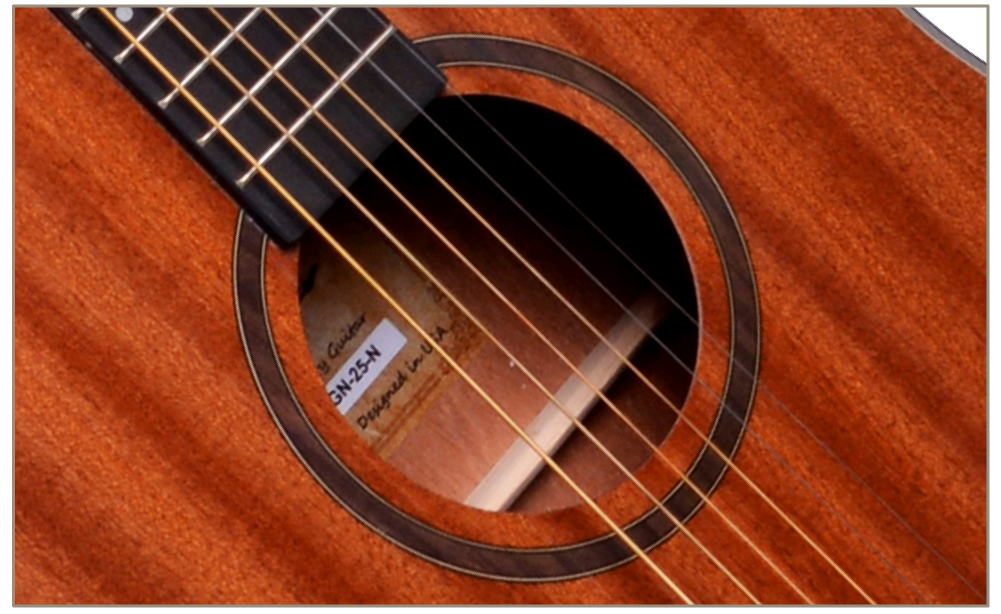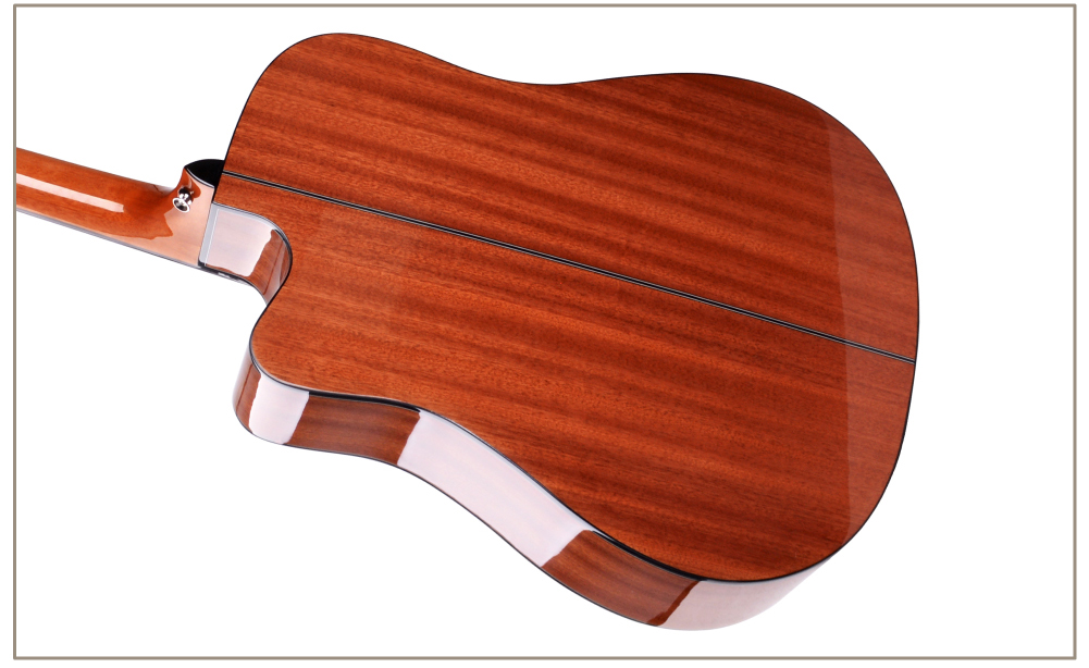 Верхняя дека гитары сделана из красивого и прочного сапеле, что позволяет создать уникальный и чистый звук. Задняя дека и обечайки также изготовлены из сапеле, что позволяет гитаре звучать более мощно и четко.