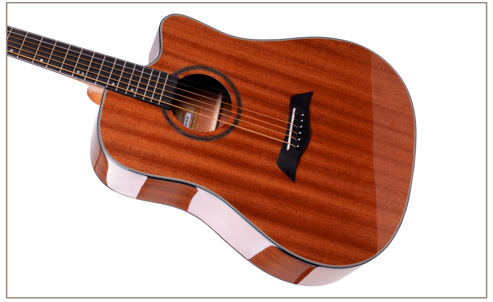 Гриф гитары выполнен из качественного махагона, что обеспечивает стабильность и надежность в игре. Гитара имеет глянцевое покрытие коричневого цвета, что делает ее не только звучащей, но и визуально привлекательной.