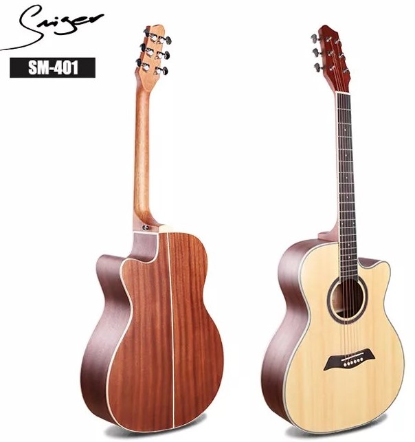 Модель Smiger SM-401 представляет собой "Grand Auditorium" гитару, изготовленную из махагона и ели, обладающую громким и насыщенным звучанием с немалой долей высоких частот. Глубокий вырез на корпусе значительно облегчает доступ к верхним позициям грифа. Благодаря качественному врезному трансакустическому звукоснимателю DOUBLE с возможностью регулировки частот и подключением по Bluetooth, музыкант может создавать различные эффекты, такие как Reverb, Delay и Chorus.