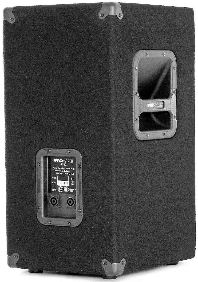 Корпус трапециевидной формы, выполнен из ДСП и обтянут чёрным ковролином. На нижней части корпуса расположен стандартный 36 мм адаптер для установки акустической системы на стойку. Две ручки для переноски.
