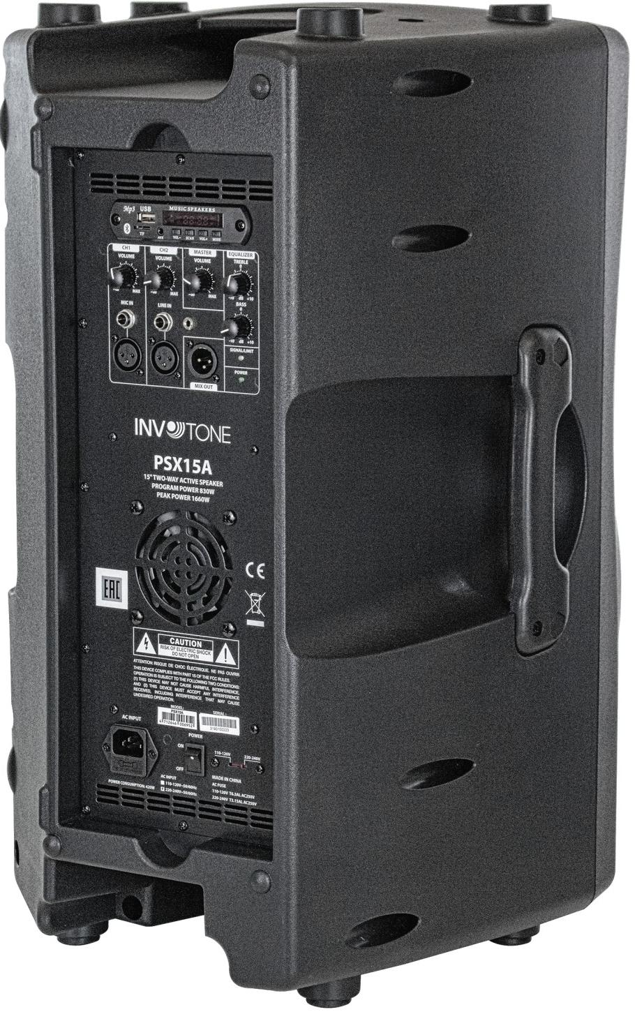 PSX15A - это не просто блок PA, а многофункциональная система «все в одном». Она имеет встроенный интерфейс Bluetooth®, с помощью которого музыку со смартфонов или планшетов можно передавать прямо в акустическую систему. Кроме того, установлен цифровой медиаплеер с USB-портом и слотом для microSD-карт (TF). Встроенный 3-канальный микшер имеет отдельные регуляторы громкости для Mic / Line In. Оба входа могут использоваться с разъемом 6,35 мм или разъемами XLR. Также имеется 3,5 мм вход для стерео разъема. Для подключения нескольких колонок этого типа также доступен выход XLR. Безопасность обеспечивается встроенным аналоговым лимитером со светодиодом индикации порога. Встроенная защита от перегрузки и перегрева.