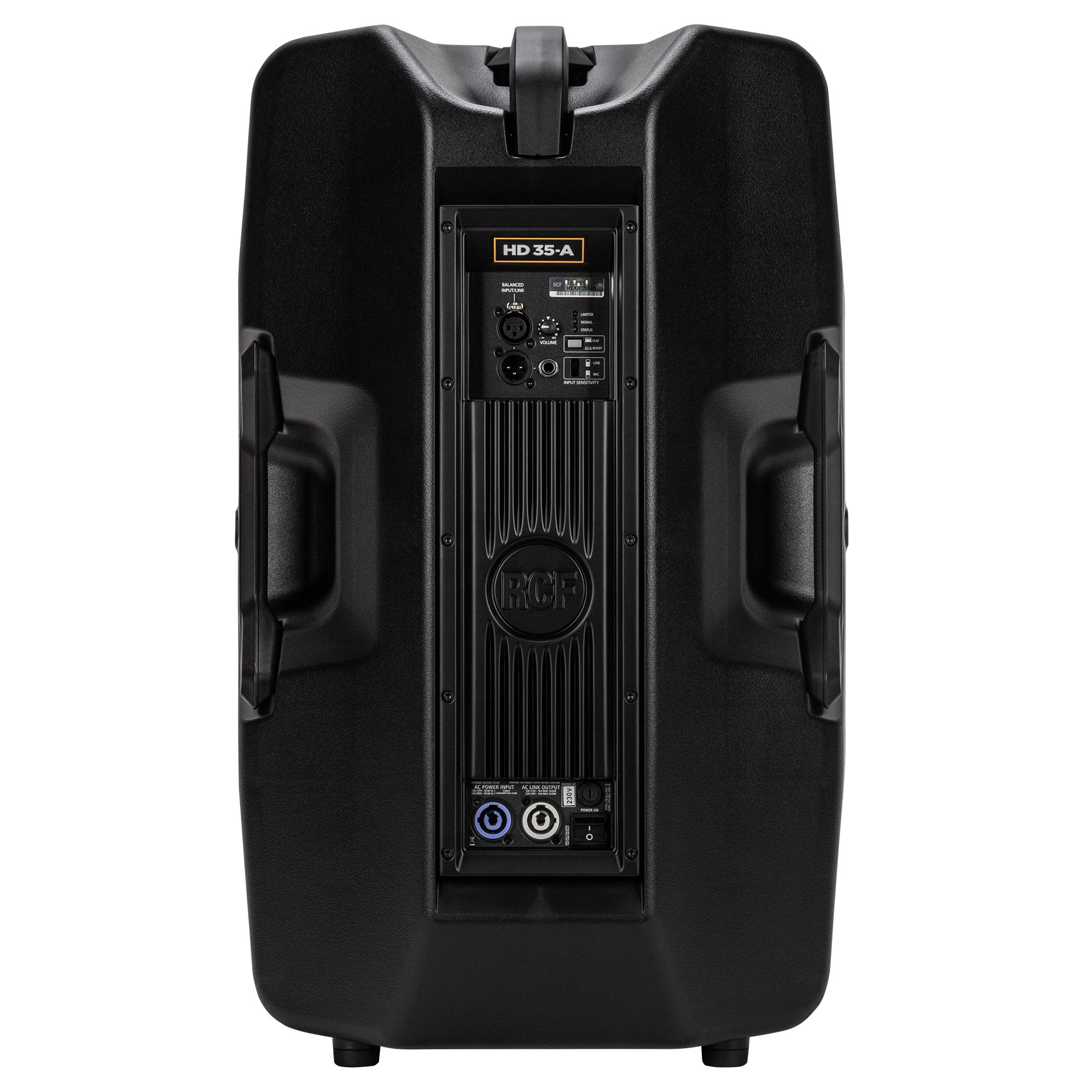 RCF HD 35-A MK4 — это активная двухполосная акустическая система, способная выдать 132 дБ SPL максимально. В основе колонки — компрессионный неодимовый драйвер с диафрагмой из титана и катушкой диаметром 3" и 15" вуфер, мощность встроенного усилителя 700 Вт RMS. DSP усилителя обеспечивает функции кроссовера, эквалайзера, лимитера, FIR-фильтрацию и защиту динамиков.