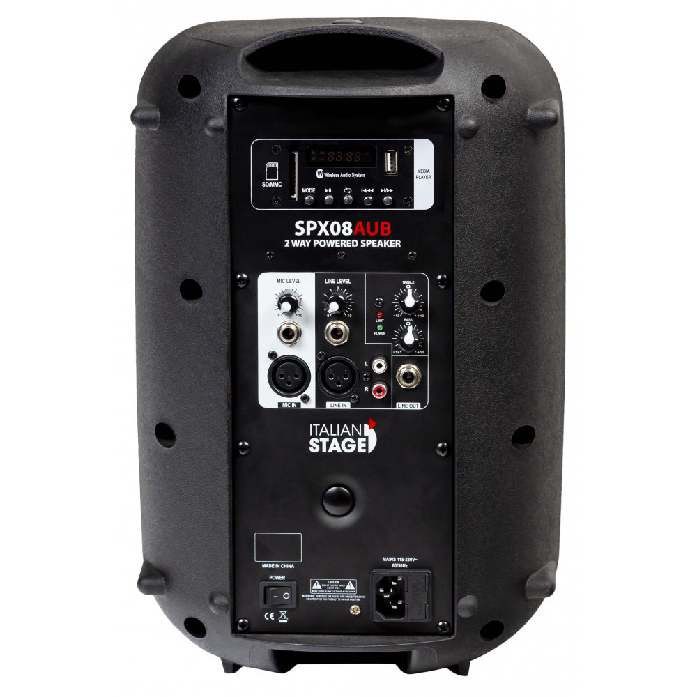 Работа ITALIAN STAGE SPX08AUB осуществляется bi-amp усилителем класса АВ, подающим 120 Вт на вуфер и 30 Вт на твитер. 8-дюймовый широкополосный динамик вместе с 1-дюймовым высокочастотным твиттером обеспечивают широкий диапазон воспроизведения 60 Гц - 20 кГц , а двухполосный эквалайзер, расположенный на задней панели, позволит произвести более точную настройку звуковой картинки.