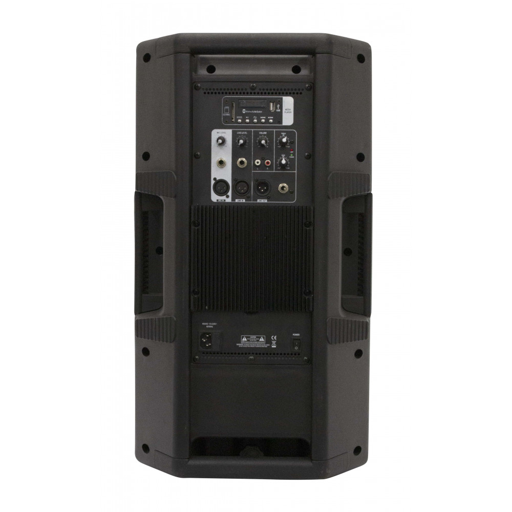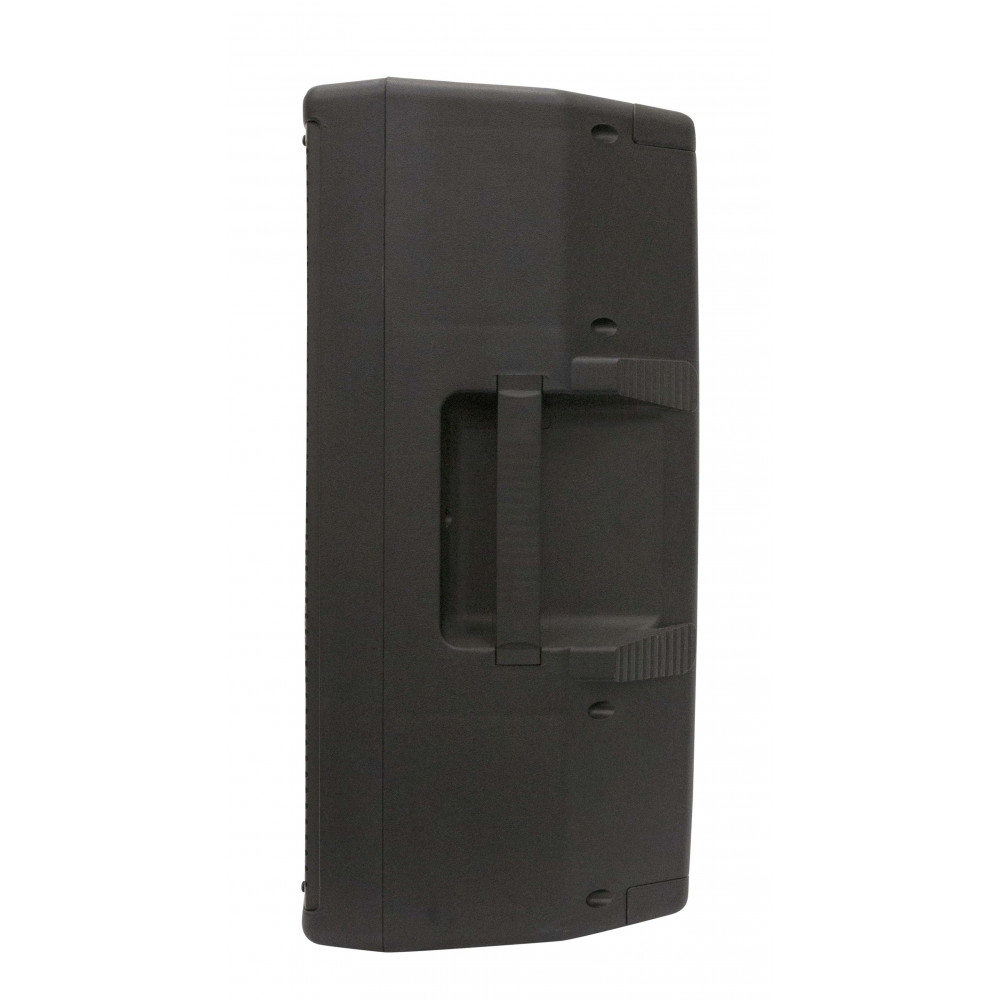 На задней панели колонки расположены линейные входы для микрофонов и источников линейного сигнала, каждый из которых оснащен отдельными регуляторами уровня громкости и позволяет осуществлять подключение посредством разъемов XLR и джек 6,3 мм, а наличие линейного выхода позволит осуществить подключение дополнительной активной акустической системы. Для удобства переноски, транспортные ручки расположены не только сверху, но и сбоку. Снизу Italian stage X212AUB оснащена 35 мм стаканом для установки на напольной стойке или штанге-расширении поверх сабвуфера.