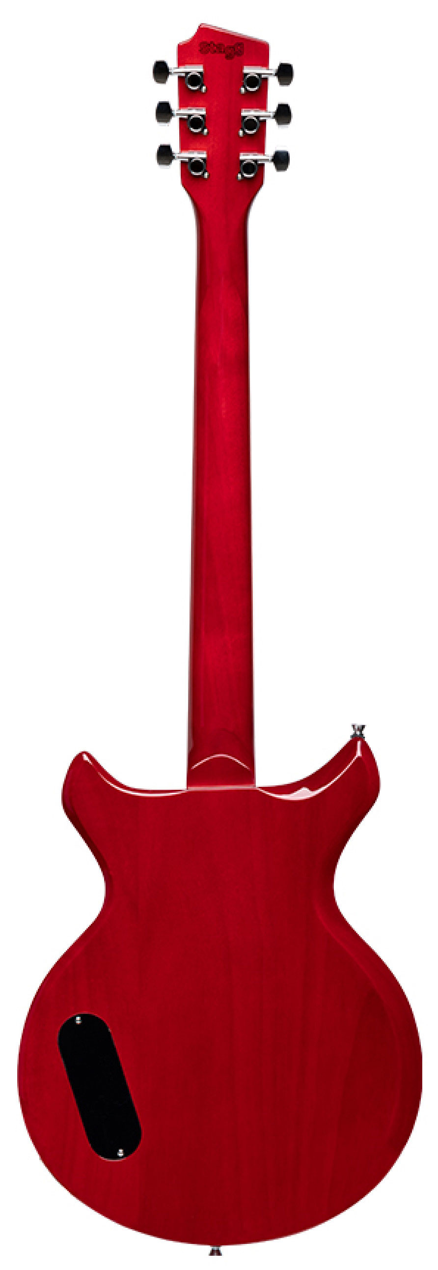 Электрогитара STAGG SVY DC TCH выполнена в корпусе из цельного красного дерева типа Les Paul с двумя вырезами. Гриф вклеенный сделан из красного дерева с глянцевой отделкой, накладка на гриф – из черного дерева. У гитары 22 лада. Используются струны D’Addario.