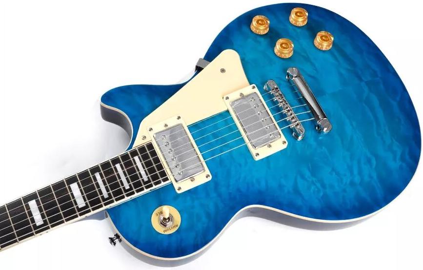 В регуляторах гитары предусмотрены 2V/2Т и 3-позиционный переключатель, а фурнитура выполнена в стильном хроме. Красивый синий цвет гитары придает ей элегантность и индивидуальность.