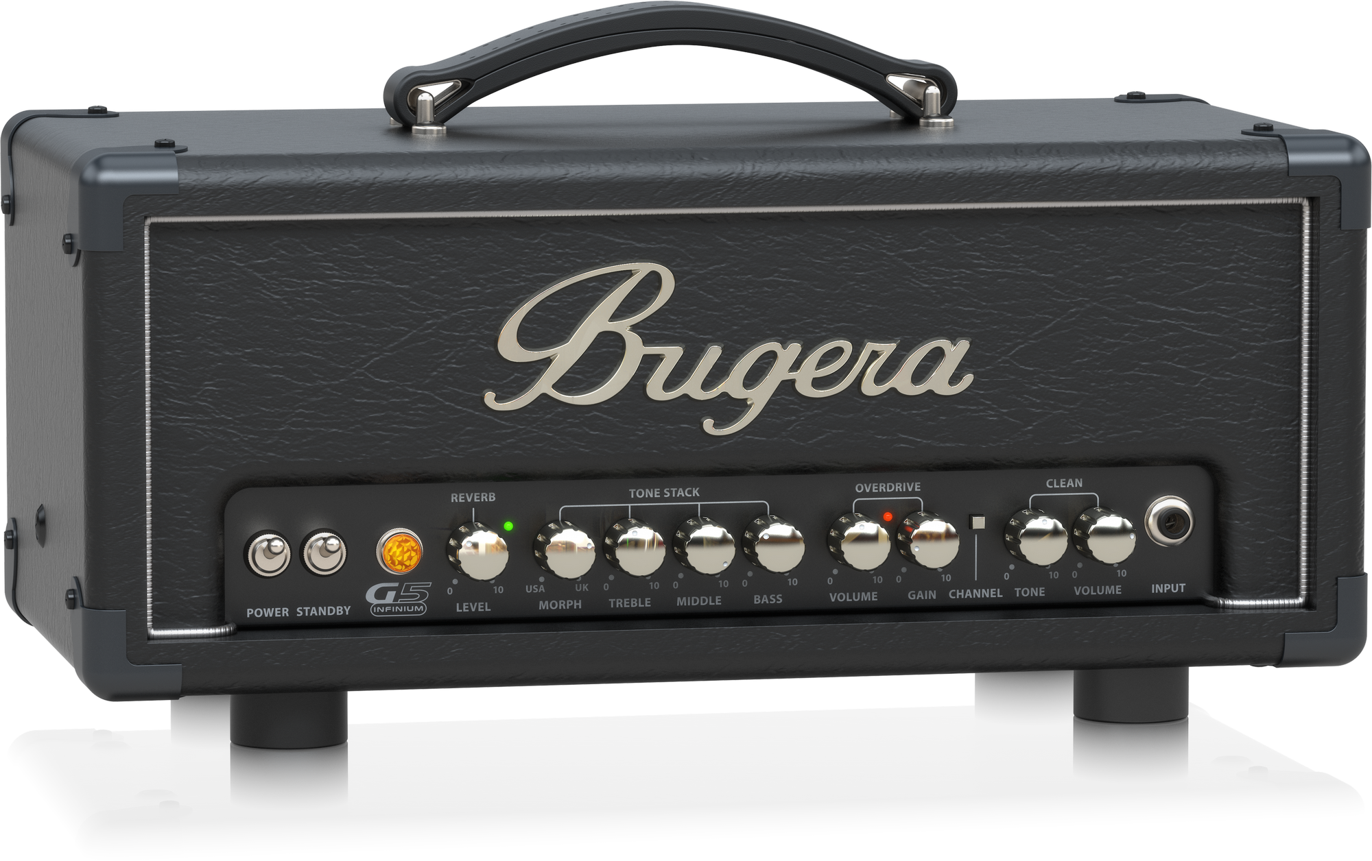 Вечный дизайн и звук ламповых усилителей оставили свой след на бесчисленных знаменитых треках на протяжении всей истории электрогитар. В погоне за этим замечательным насыщенным винтажным тоном, компания Bugera с гордостью представляет G5 INFINIUM. К своему великолепному современному внешнему виду G5 предоставляет 5 прекрасных ламповых ватт. Этот усилитель характеризуется встроенным высоко четким ревербом, 2-полосным аттенюатором и поэтому Вы сможете добиться наилучшего звука при любой громкости, а чрезвычайно универсальный MORPH эквалайзер поможет плавно переключаться между винтажным U.S. и British тоном.Усиливает универсальность G5 революционная технология INFINIUM Tube Life Multiplier, которая делает замену ламп невероятно простой, и Вы можете тратить больше времени на игру. G5 класса-А усилитель с ЕСС83 лампой предусилителя и 12ВН7 лампой мощности предоставляет сбалансированную гармонию и натуральную ламповую компрессию.