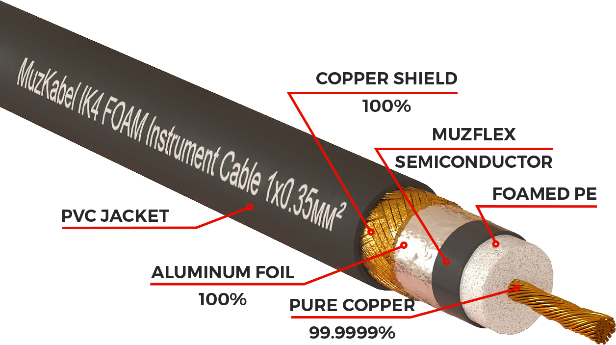 Кабель IK 4 имеет проводник из чистой меди с чистотой 99,9999%, обеспечивающей наилучшее качество передачи сигнала. Шнур имеет низкое сопротивление в 0,05 Ом/м, что дает максимальную эффективность передачи сигнала.