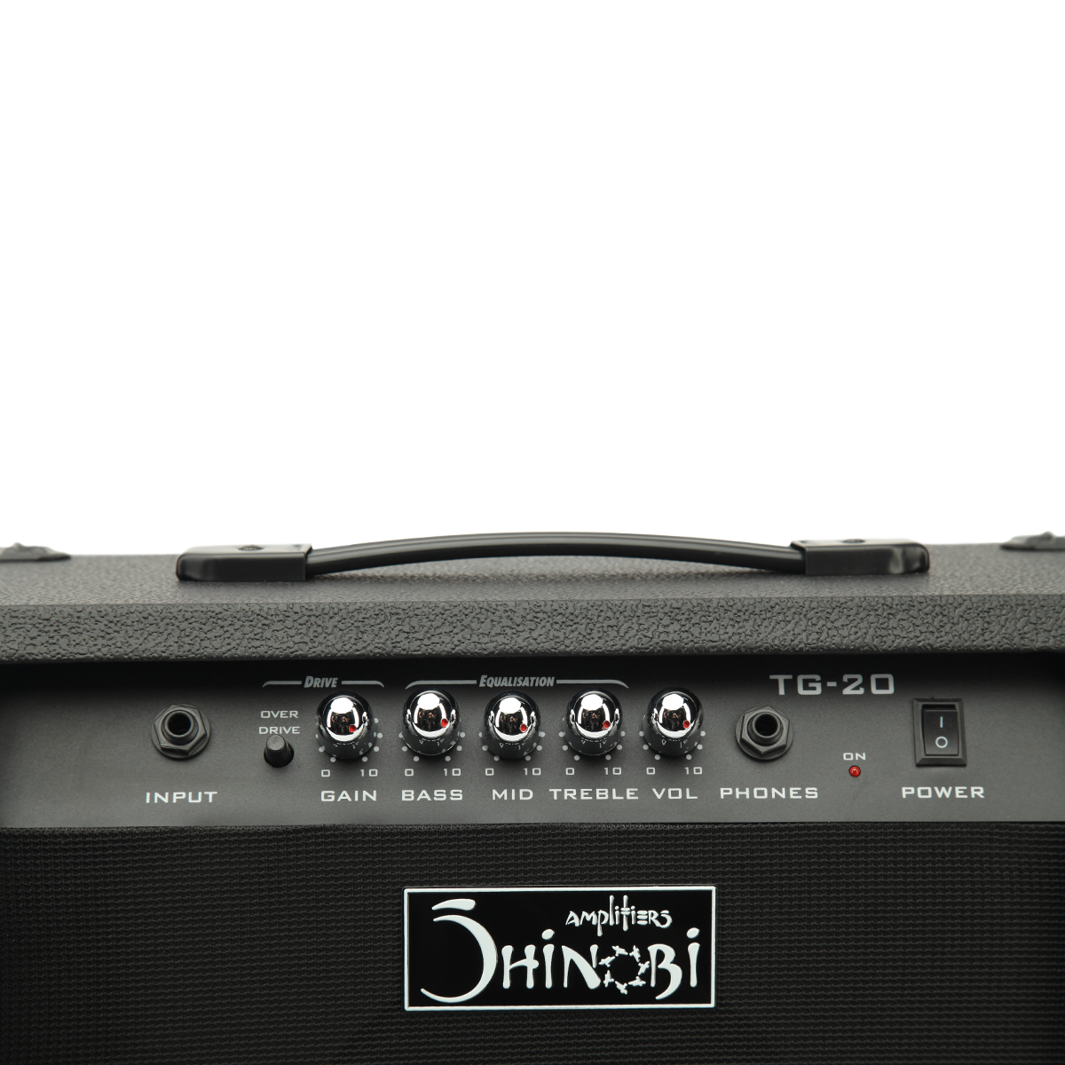 Shinobi TG-20 - гитарный комбоусилитель, обладающий прекрасным звуком и понятными настройками. Это прекрасное решение для использования в домашних условиях, выступлениях и выездных мероприятиях.