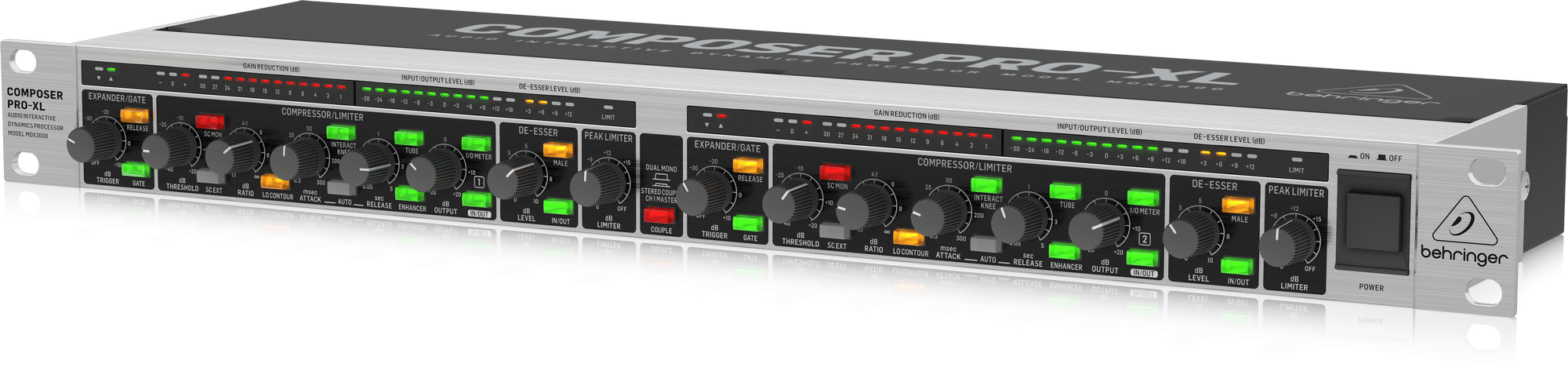 Кроме того, MDX2600 оснащен встроенным динамическим энхансером, де-эссером, Low Contour-НЧ фильтром и революционной переключаемой имитацией «лампового» звука, обеспечивающей теплоту и прозрачность классических ламповых схем. Одним словом, MDX2600 обеспечивает практически всё, что необходимо для студийного качества обработки динамики!