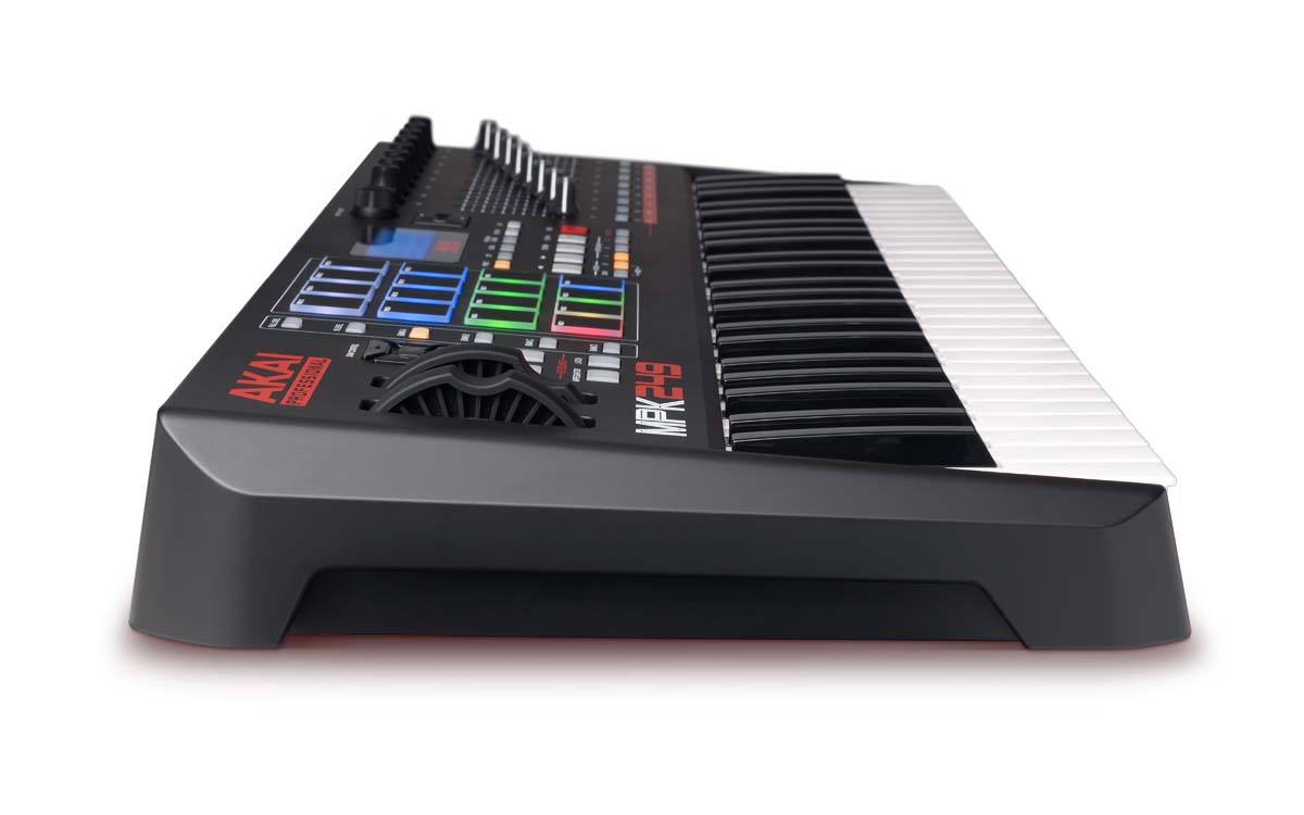 AKAI Professional MPK249 предложит музыканту 49 полувзвешенных клавиш с послекасанием и чувствительностью к скорости нажатия. Есть возможность транспонирования клавиатуры на 1 октаву вверх и вниз, что позволяет получить доступ к расширенному диапазону. Также на поверхности находятся 8 назначаемых ручек, 8 фейдеров и 8 кнопок, 16 динамических пэдов с обратной связью RGB, а также полный набор кнопок транспортной панели. Три банка расширяют количество ручек, фейдеров и переключателей до 24 каждый, а четыре банка пэдов расширяют их количество до 64. Устройство оптимизировано для работы с Mac и ПК с подключением по USB.