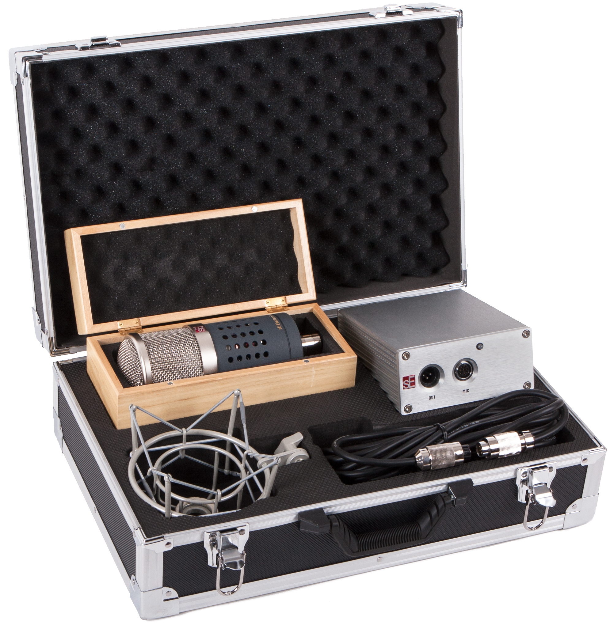 Комплектация: Держатель "паук", блок питания со шнуром, микрофонный кабель, металлический и деревянный кейсы