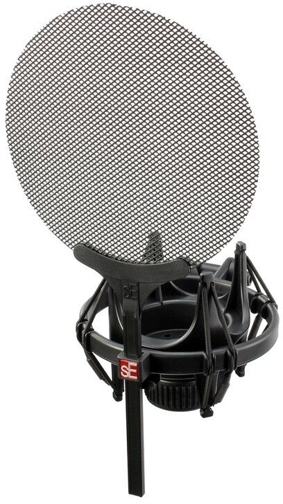 Комплектация: металлический поп-фильтр, держатель типа паук, резьбовой переходник на микрофонную стойку, стикер логотип sE, руководство пользователя с гарантийной картой