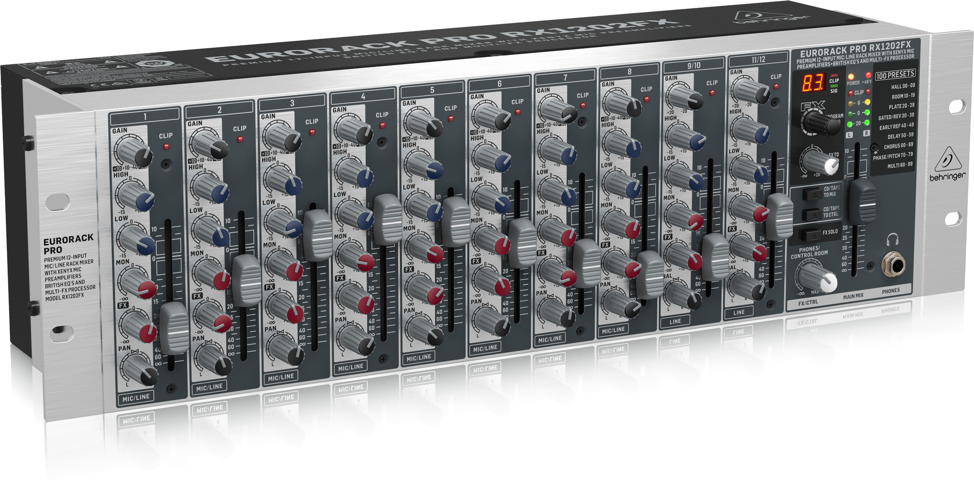 Особенности: Сверхнизкошумящий 12-канальный рэковый микшер с высококачественными микрофонными предусилителями и 24-битным мультиэффектпроцессором.