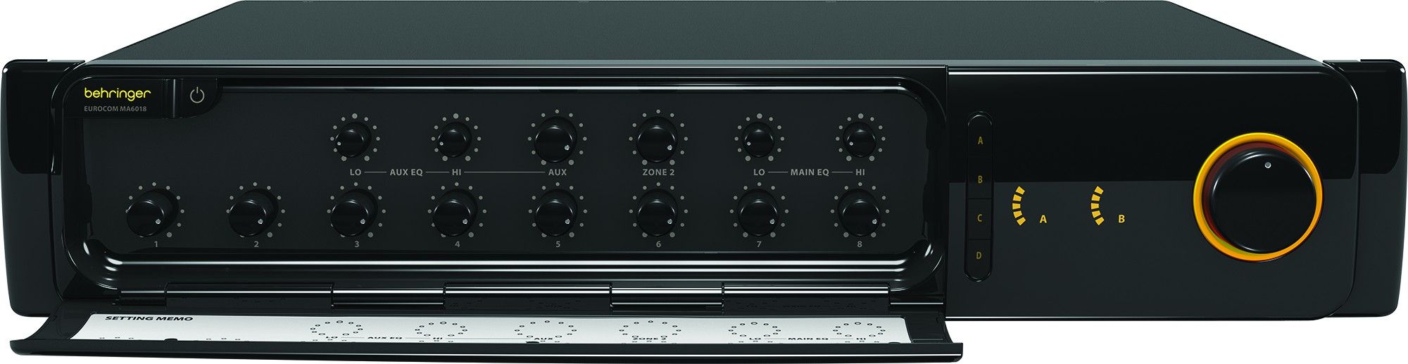 - Отдельные переключатели выбора линейного/микрофонного сигнала, фантомного питания, выхода главного микса и/или ""Zone 2"", назначения каналов блокировки звука, приоритетных каналов, функции удаленного регулятора громкости, предупредительного звукового сигнала (Chime) и функции авто-смешивания для каждого входа