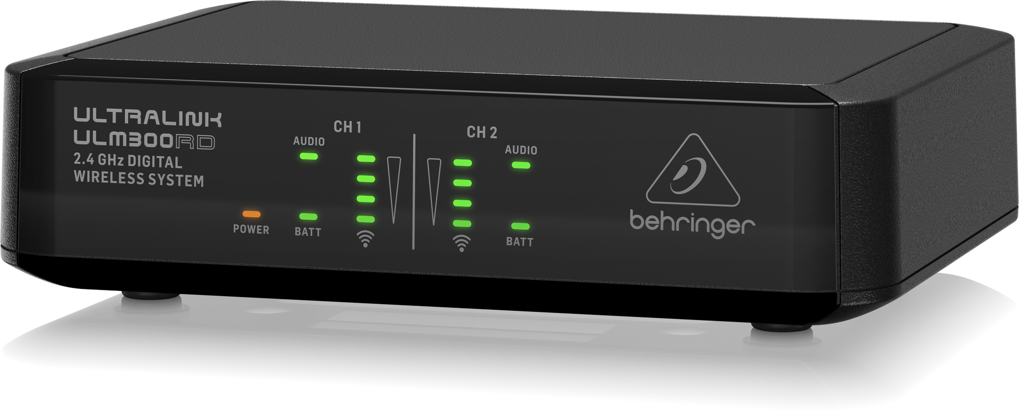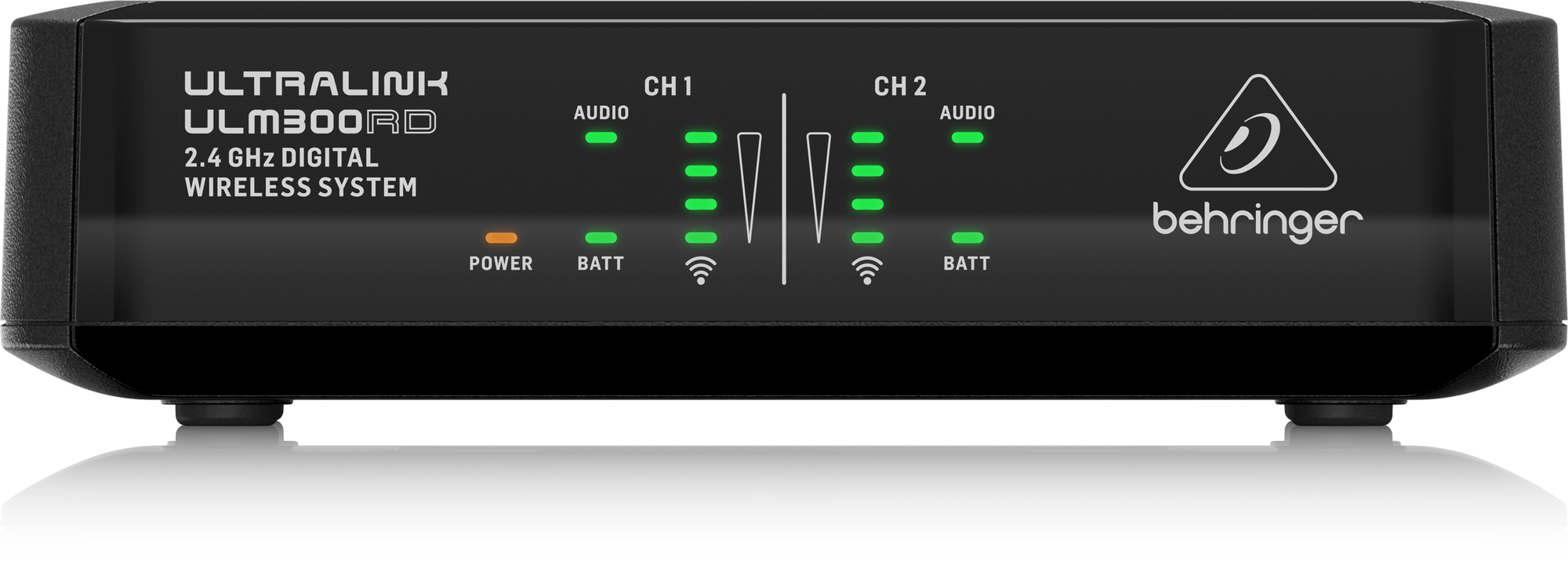 Настройка системы довольно проста, поскольку микрофоны ULM300M автоматически соединяются с двухканальным приемником ULM300RD. Удобно расположенные на передней панели приемника светодиодные индикаторы отображают присутствие и устойчивость сигнала, а индикаторы передатчиков сообщают о необходимости замены батарей. Аудио выходы приемника выполнены на балансных XLR и небалансных 1/4" TS коннекторах, что даёт возможность подключаться к акустическим и "conference room" системам, или высококачественным инструментальным усилителям.