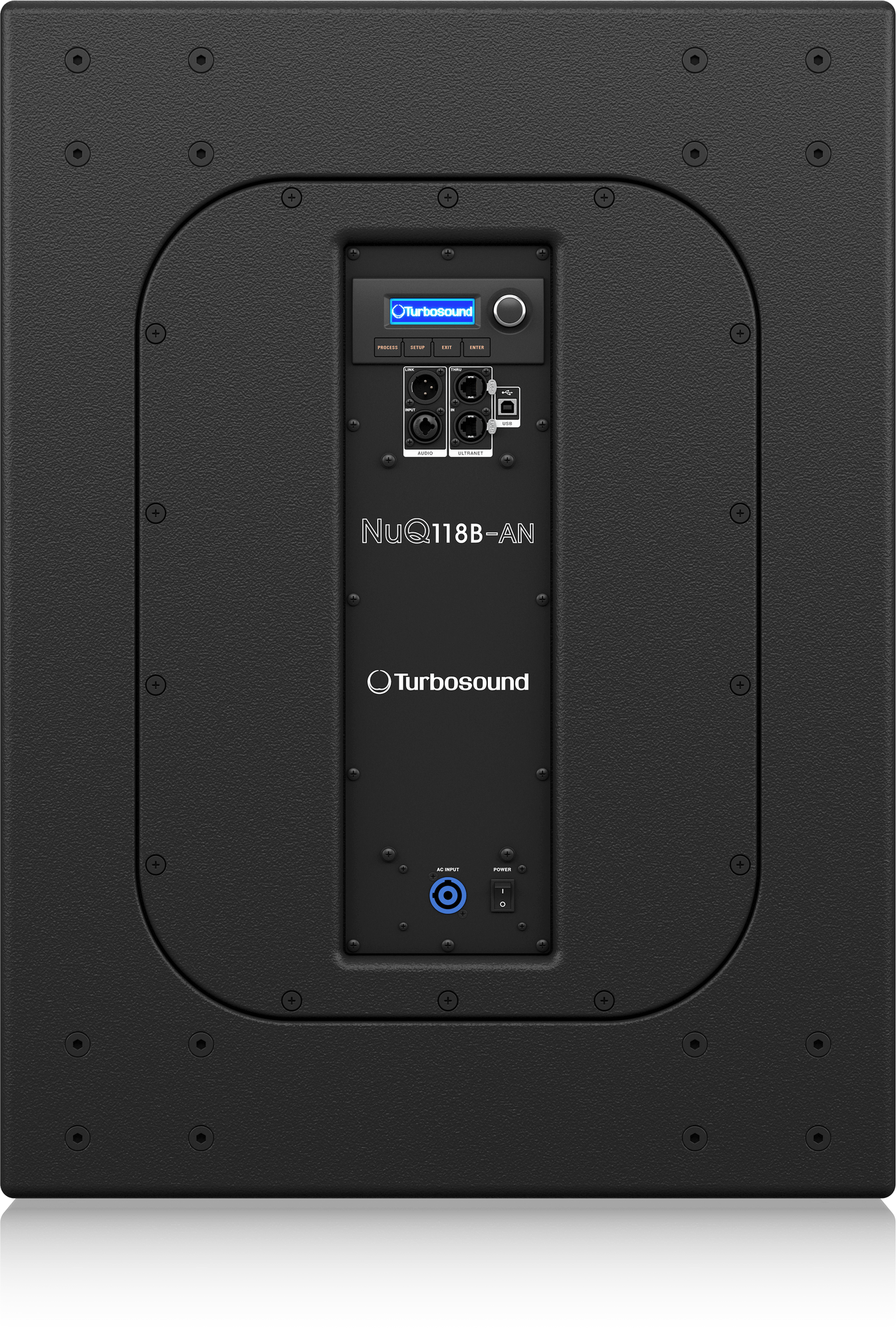 NuQ118B-AN оборудован двойным бас портом и мощным 18" низкочастотным динамиком с двойным подвесом, который использует специальную голосовую катушку с внутренней/внешней обмоткой для высокой плотности магнита, лучшего рассеивания тепла и улучшения эффективности. Сабвуфер быстро и точно передает свой частотный диапазон практически без искажений. Выходная мощность обеспечена эффективным и легковесным KLARK TEKNIK 3000 Вт класса-D усилителем. Сложный, но легкий в использовании KLARK TEKNIK Digital Signal Processor (DSP) предоставляет динамический эквалайзер для выразительного низкочастотного диапазона при низком уровне громкости и утонченное ограничение для четкости на высоком уровне громкости. На задней панели расположен LCD дисплей и поворотный энкодер, который дает доступ к управлению эквалайзером, кроссовером и функциям маршрутизации сигнала. Помимо балансного XLR входа имеется XLR выход для шлейфового подключения дополнительных активных акустических систем или активных сабвуферов, а также USB порт, который дает возможность дистанционно управлять сабвуфером через компьютер и обновлять прошивку DSP. ULTRANET подключение представлено двумя etherCON разъемами с блокировкой, что дает до 16 независимых канала 24-бит цифрового аудио и управление данными, передаваемых через САТ5 кабель между совместимыми цифровыми устройствами, включая микшеры, системы мониторинга и т.д. Упрощенный монтаж кабелей и легкая установка значительно экономят время.