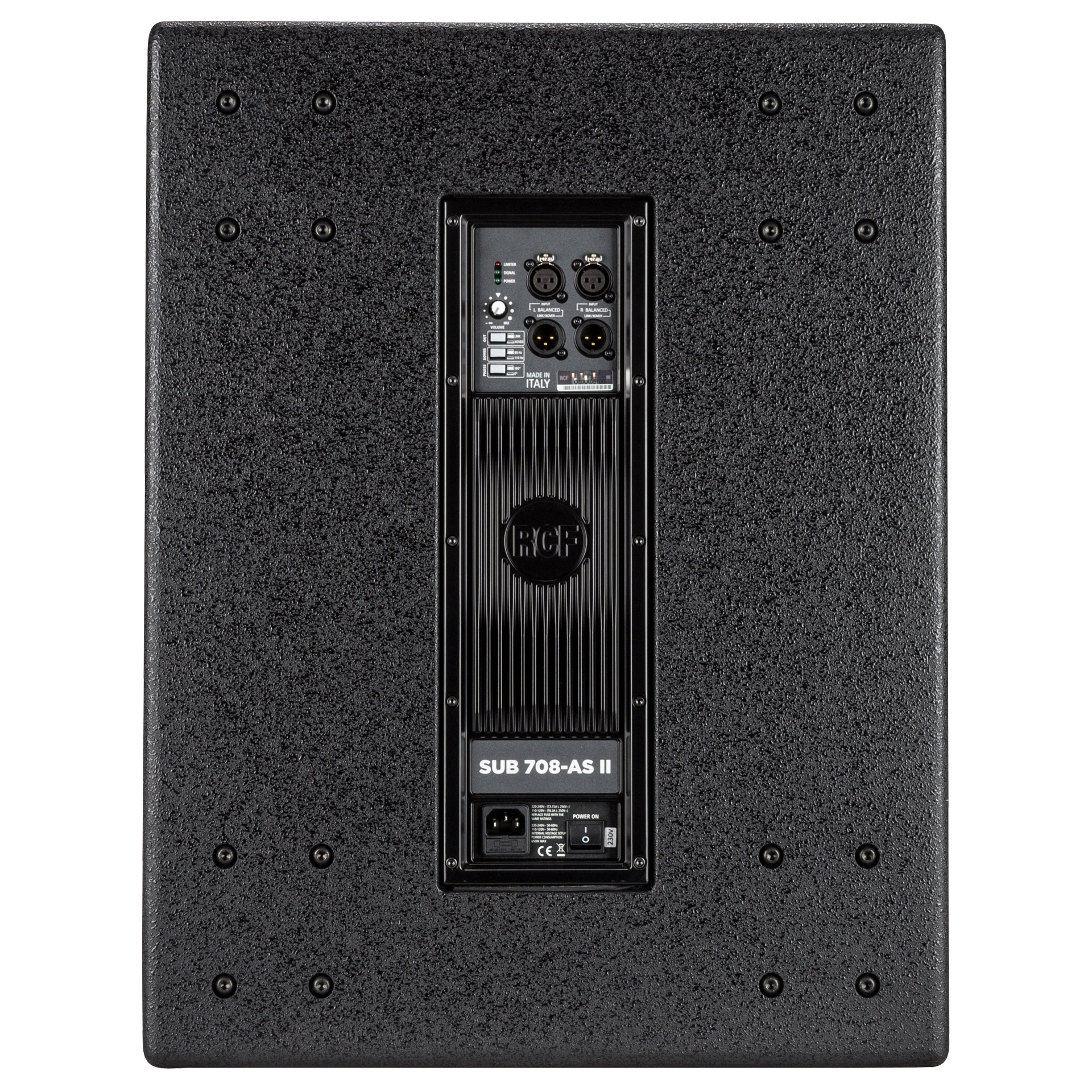 SUB 708-AS II — это компактный и мощный сабвуфер, оснащенный цифровым усилителем мощностью 700 Вт RMS и 18-дюймовым динамиком. RCF SUB 708-AS II отлично сочетается с 12" или 15" сателлитами, подходит к АС линейки ART или D-LINE. Благодаря небольшим размерам и весу, а также ручкам по бокам корпуса, сабвуфер легко переносить. Подключить его поможет встроенный цифровой стерео-кроссовер (DSP) с регулируемой частотой для подключения сателлита. Звукоинженеры любят сабвуферы RCF за высокую эффективность. Соотношение размера / веса колонки к звуковому давлению впечатляют.