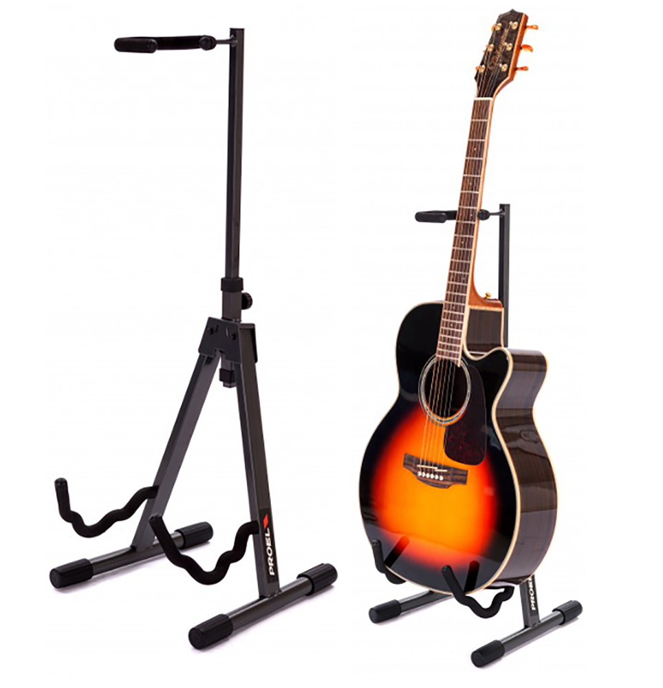 Регулируемая стойка с держателем грифа для акустических, классических, электро и бас гитар. Все концы прорезинены для защиты инструмента. Вертикальная стойка с регулируемым по высоте защитным хомутом для грифа. Антискользящий натуральный каучук. Универсальная защита адаптированна к любому инструменту.