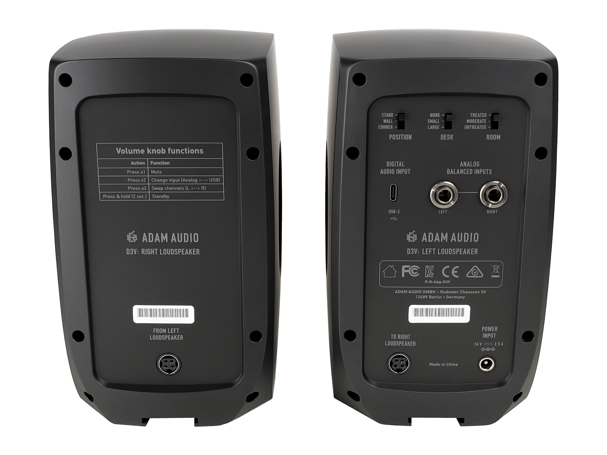 Интерфейсы включают USB‑C цифровой вход с поддержкой работы 24‑бит/48 кГц без драйверов, а также два balanced ¼″ TRS jack‑входа. Регулятор громкости совмещён с переключателем входов и режимов DSP, а фронтальный выход для наушников автоматически приоритетен при подключении. Все основные настройки доступны на задней панели монитора: фильтры Bass, Desk и Treble для коррекции звучания в зависимости от расположения и рабочего стола.