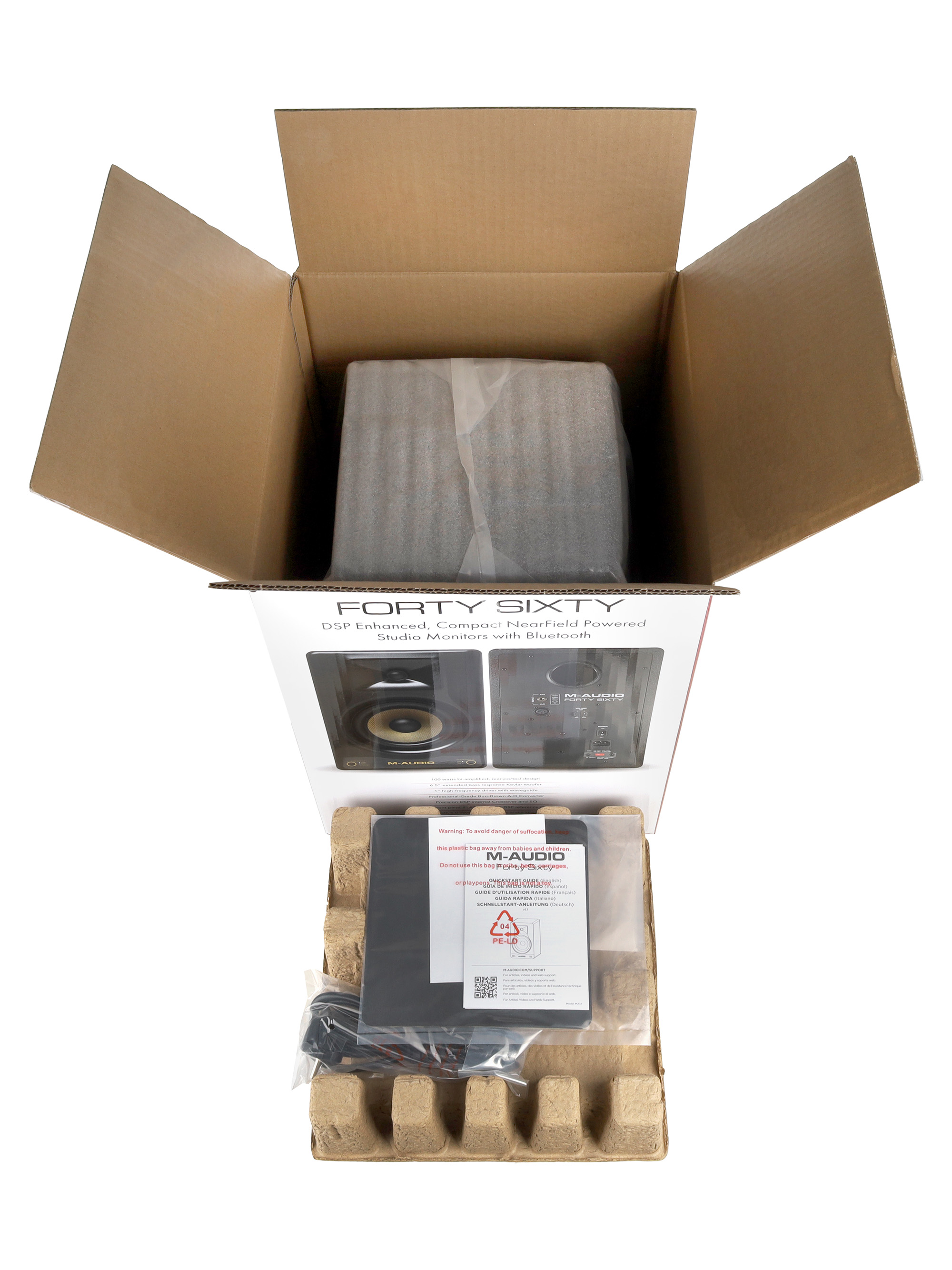 M-Audio Forty Sixty разработаны для воспроизведения студийного звука с нейтральной частотной характеристикой и мощностью 120 Вт. Они оснащены двухполосной системой с акустически инертным корпусом из МДФ с фазоинвертором, обеспечивающим глубокие и четкие басы благодаря низкочастотным динамикам из кевлара. Высокочастотные твитеры с шелковым куполом и оптимизированный волновод способствуют точной передаче высоких частот и улучшенной стереопанораме.