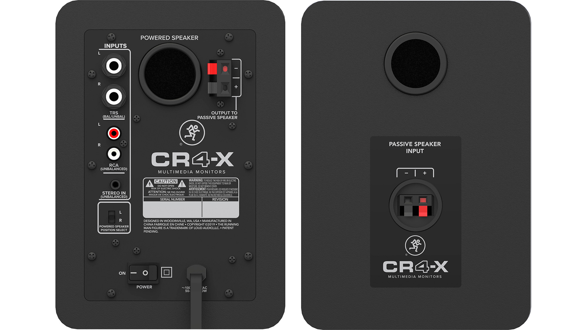 На лицевой панели активного монитора имеется регулятор громкости, а также выход для наушников, представленный разъемом 1/8'' Jack TRS. Для подключения источника аудиосигнала есть один балансный и два небалансных стереофонических входа, представленных парами разъемов 1/4'' Jack TRS и RCA, а также разъемом 1/8'' Jack TRS соответственно. Коммутация с пассивной колонкой происходит с помощью комплектного спикерного кабеля.