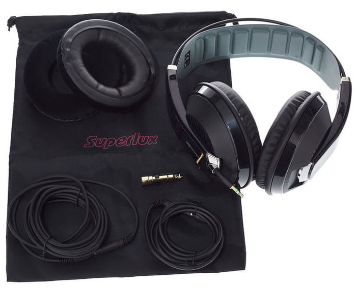 В комплекте: 1 пара велюровых сменных амбушюр, переходник с 3,5 на 6,3 джек, 2 х съемных кабеля (3 и 1 м), кабельный зажим, чехол
