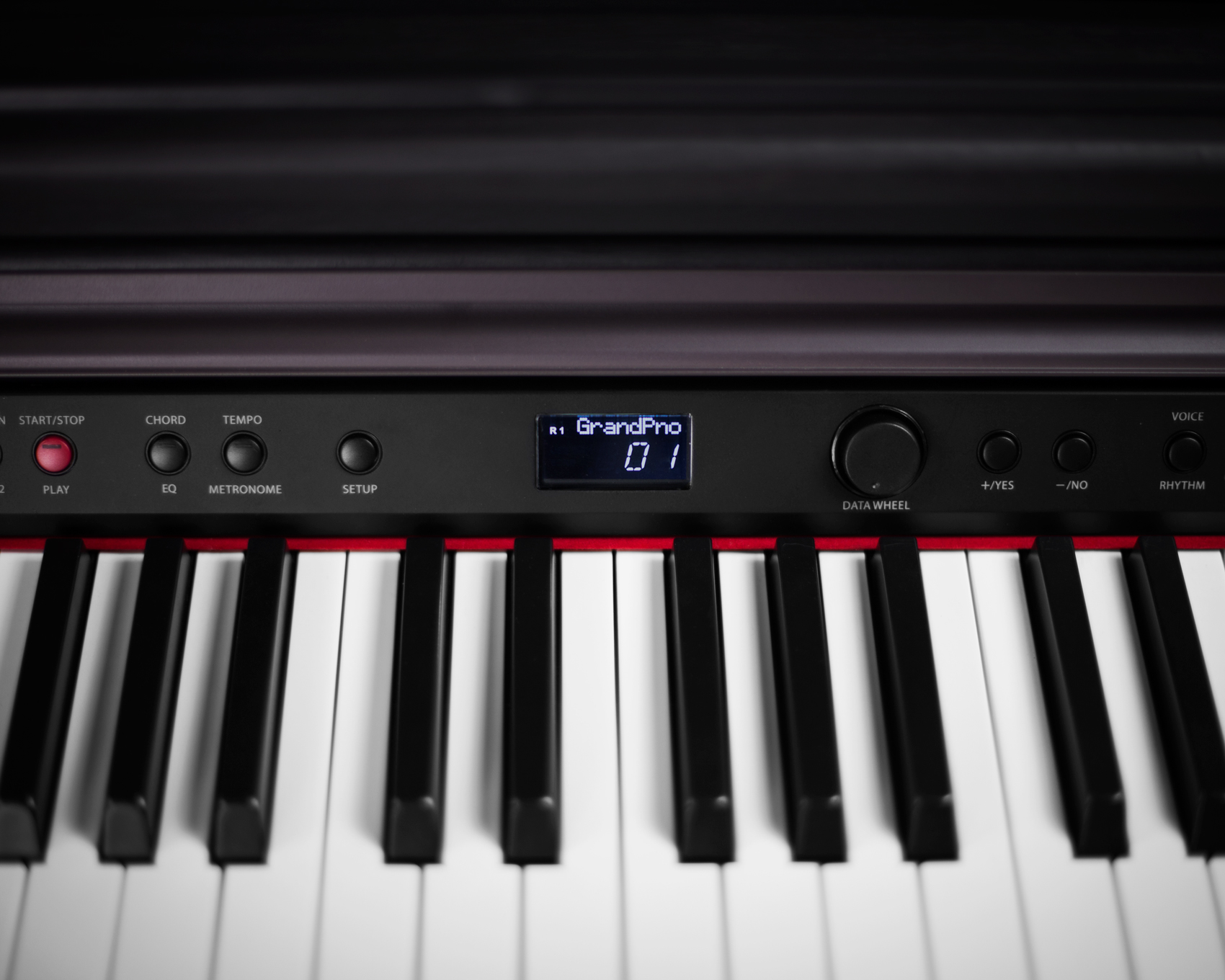 Новая полноразмерная молоточковая клавиатура и клавиатура, чувствительная к скорости нажатия, дарит ощущение акустического фортепиано на кончиках ваших пальцев. Его передовая, естественная акустическая сбалансированная конструкция молоточкового механизма обеспечивает динамический отклик и плавность игры, а также пять различных настроек скорости касания, чтобы удовлетворить любой стиль практики или выступления.