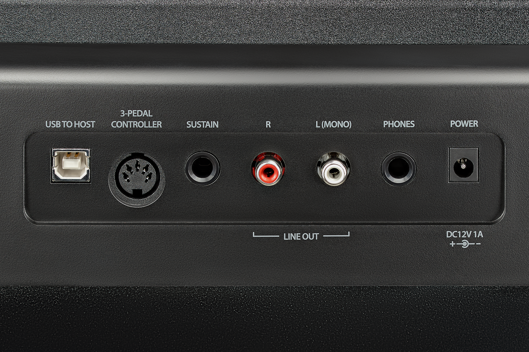 - Разъемы: USB, PEDAL IN, 3-PEDAL CONTROLLER, Линейный выход (Стерео), Выход для наушников