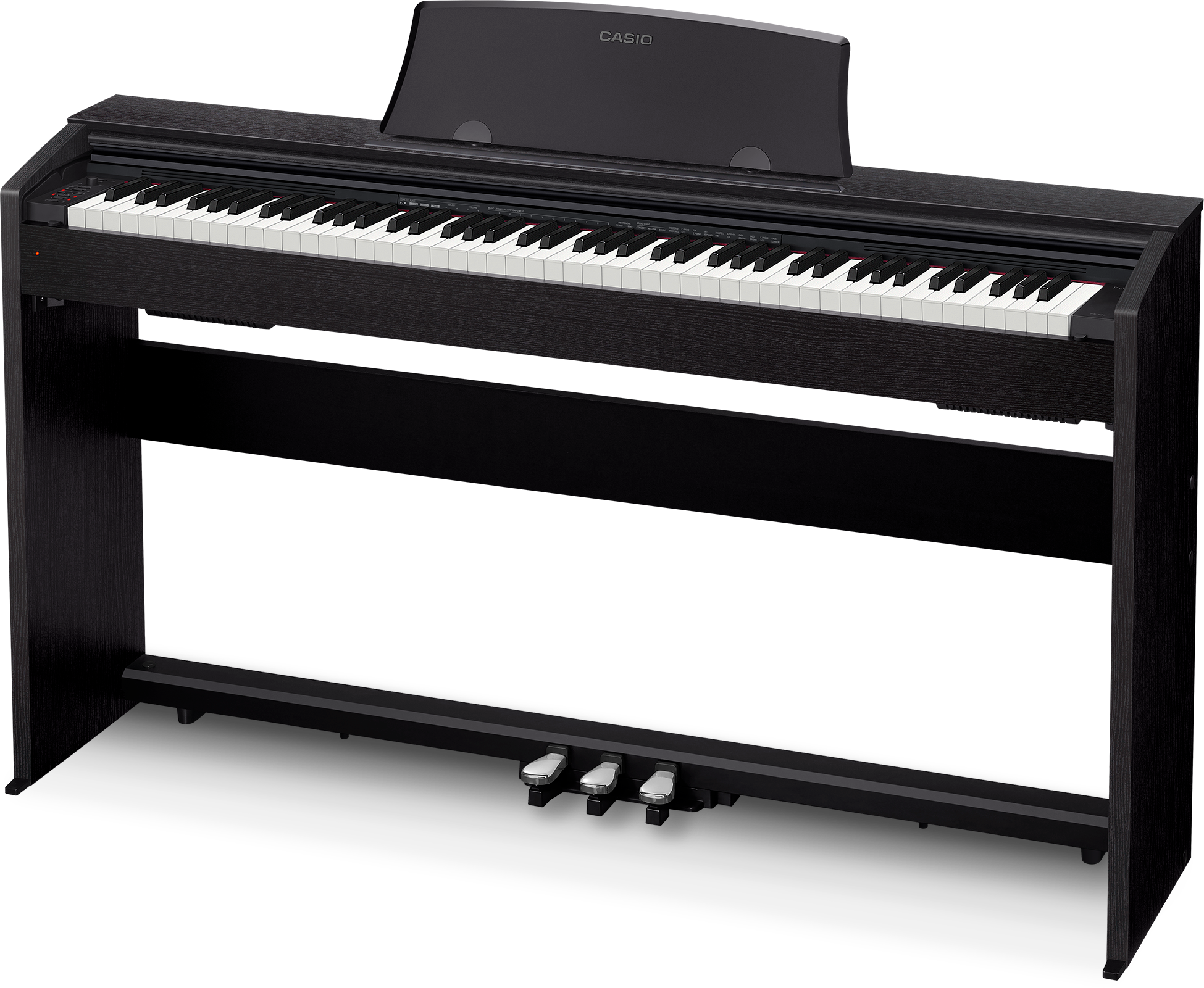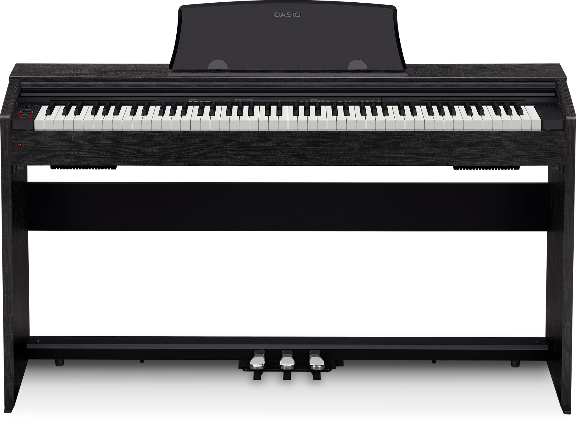- Элегантный дизайн: CASIO PX-770 имеет тонкий современный дизайн, который подчеркивает ваш интерьер. Корпус с прозрачной крышкой для клавиатуры, подставка для нот и блок с тремя педалями придают инструменту утонченный внешний вид.